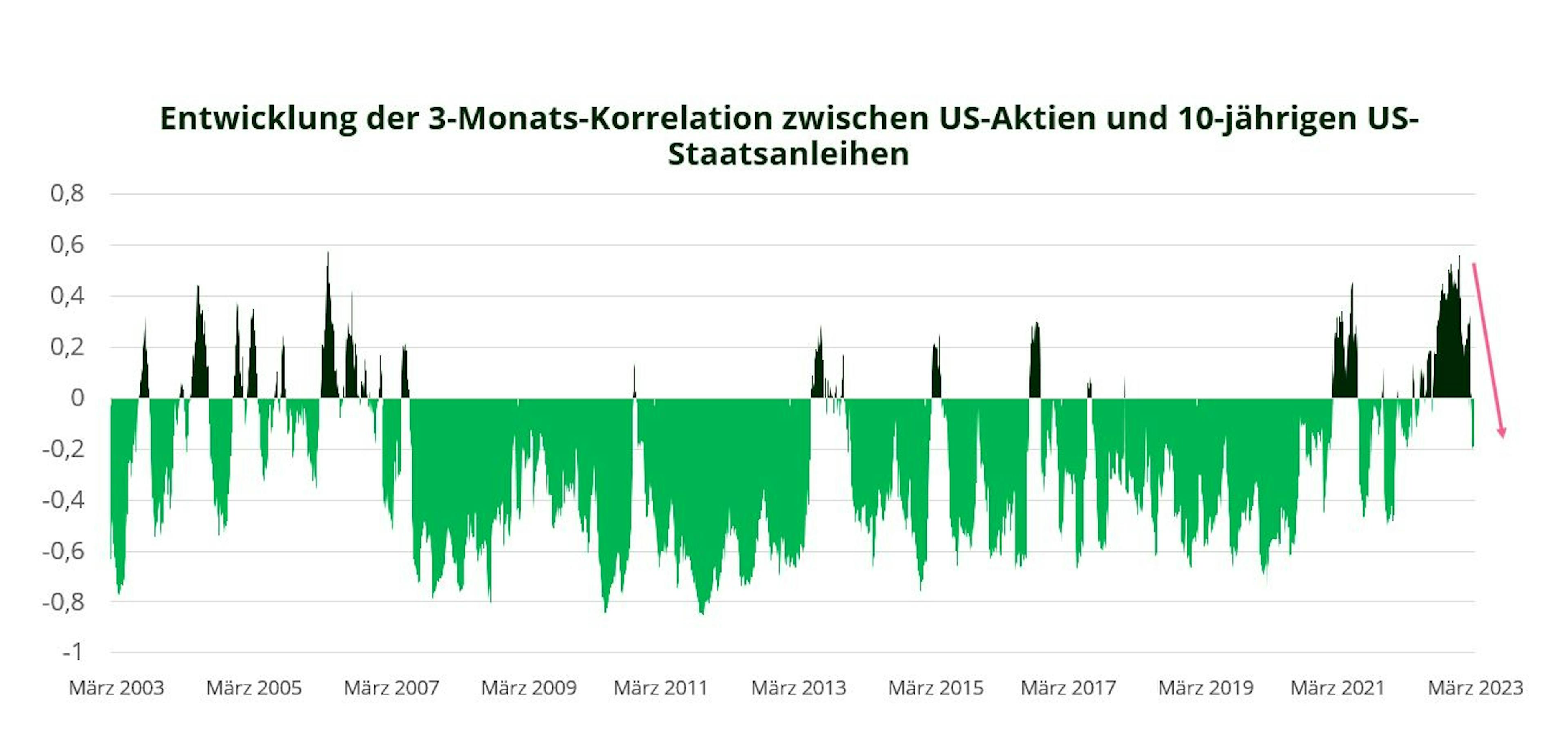 Quelle: Carmignac, Bloomberg; 3-Monats-Korrelation zwischen dem Tageskurs des S&P 500 und dem Tageskurs 10-jähriger US-Anleihen.
