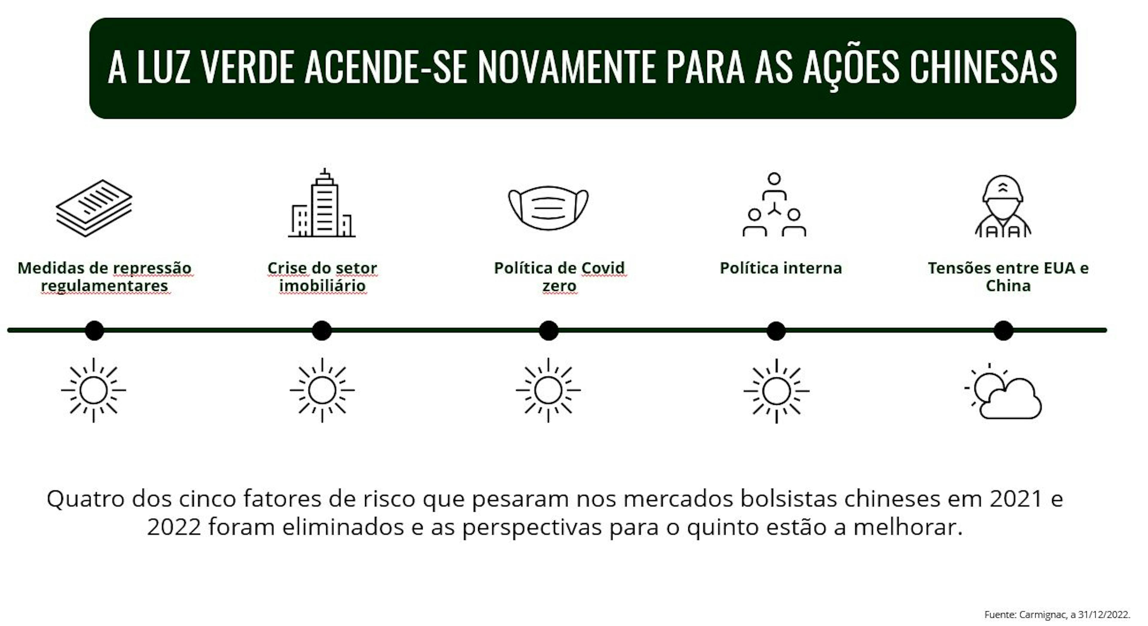In Bezug auf die ersten vier Punkte stehen die Ampeln auf Grün, da China nicht nur die Maßnahmen zur Verschärfung der Aufsicht abgeschlossen hat, sondern auch Bereitschaft zur Unterstützung des Privatsektors, der Internet-Riesen und des Immobiliensektors gezeigt hat. Darüber hinaus hat die Regierung seit dem KP-Kongress im Oktober konkrete Veränderungen eingeleitet. Die Null-Covid-Politik wurde beendet, und am 8. Januar öffnete China seine Grenzen vollständig.