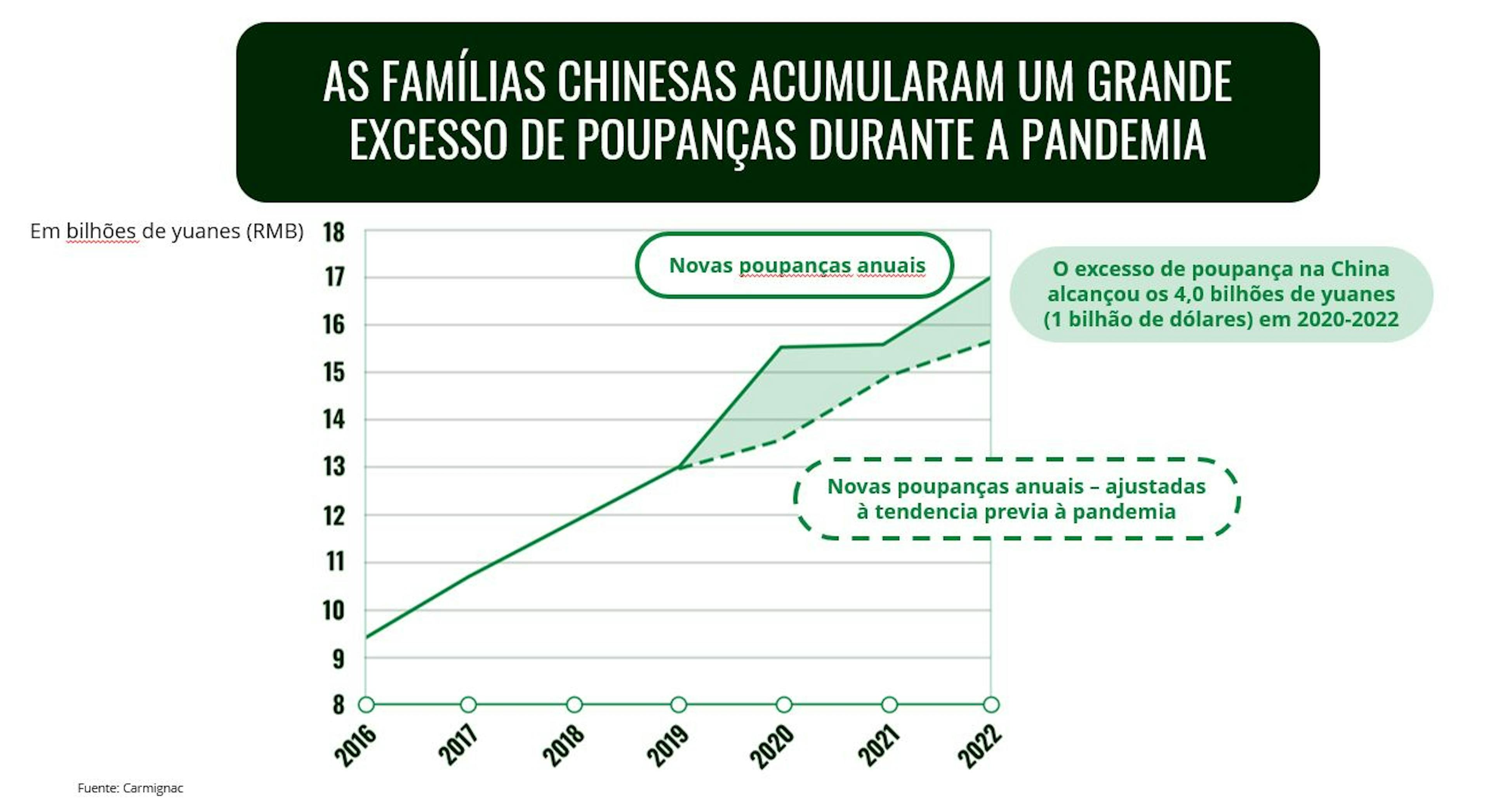 Höherer privater Konsum, angetrieben durch übermäßige Sparguthaben. Das Sparguthaben der chinesischen Privathaushalte beträgt inzwischen fast 18 Billionen Renminbi (2,5 Billionen Euro); allein seit 2020 wurden 4 Billionen Renminbi angespart, was vor allem auf die pandemiebedingten Lockdowns zurückzuführen ist.