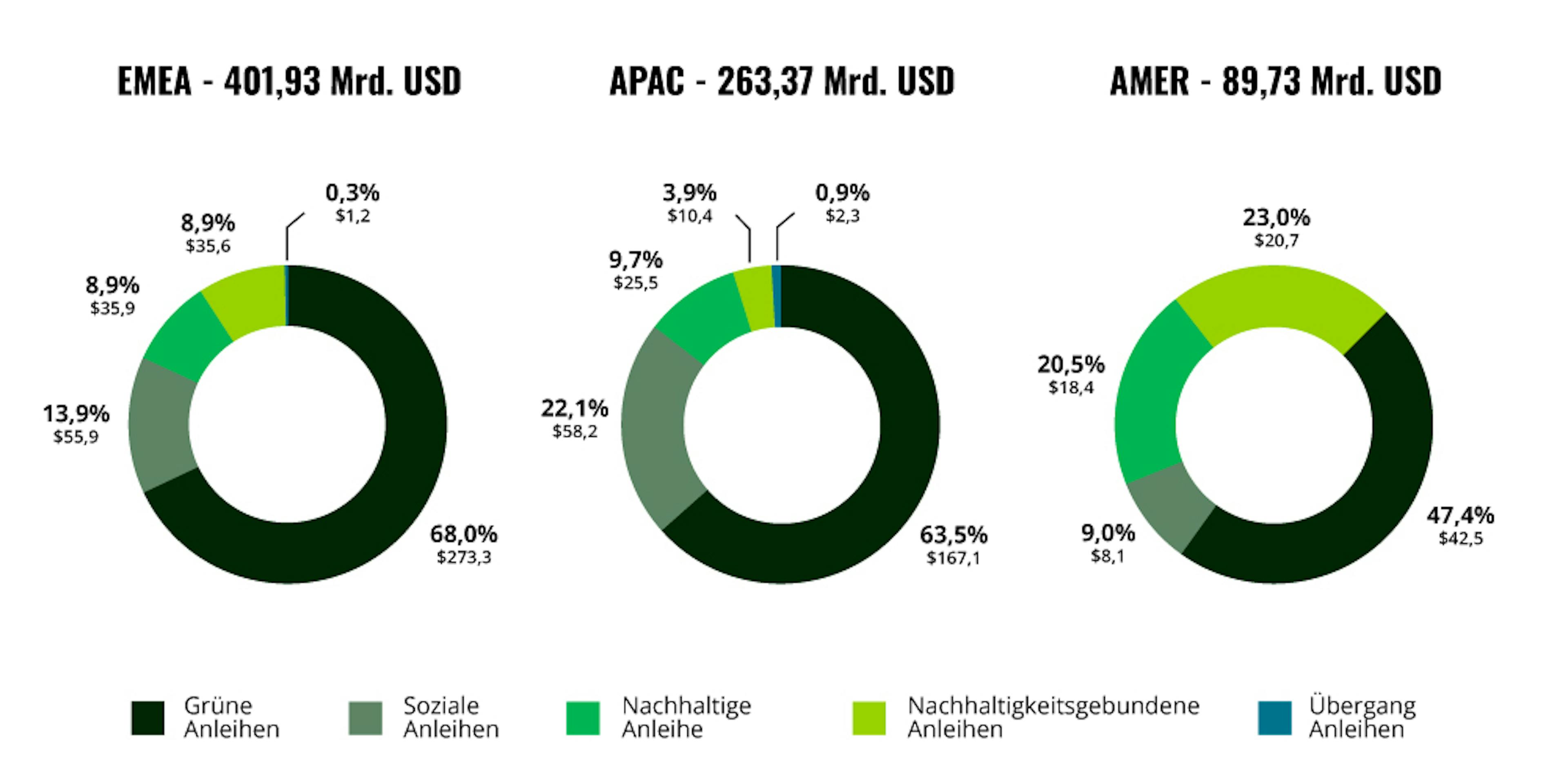 Ausgabe von nachhaltigen Anleihen nach Regionen: