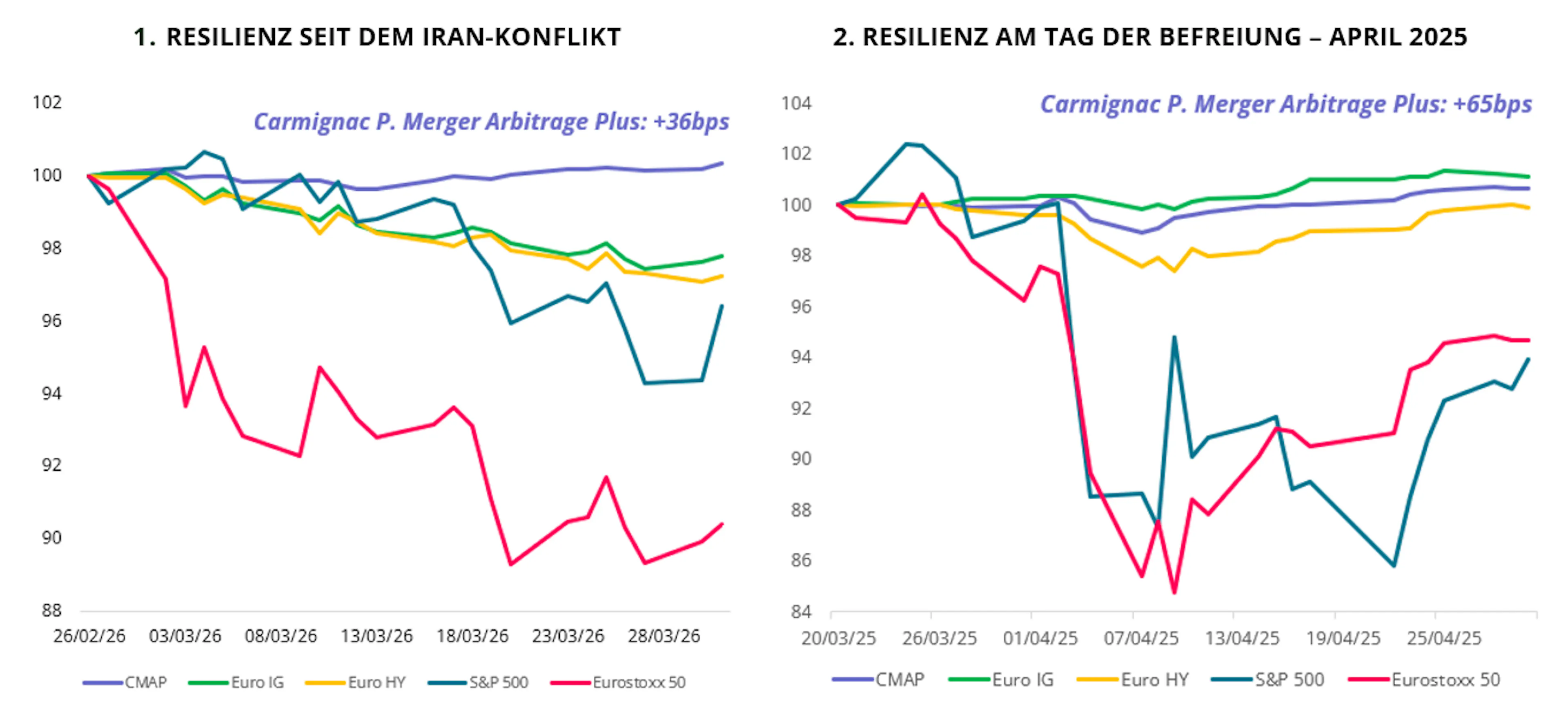 Der Vorteil unserer Strategie liegt in ihrer Unabhängigkeit. Die Renditen aus Fusionsarbitrage hängen vom Ausgang der jeweiligen Transaktionen ab, nicht von einer allgemeinen Marktentwicklung, und diese Unterscheidung hat sich in den jüngsten volatilen Märkten als wertvoll erwiesen. Während des „Befreiungstags“ und der Eskalation im Iran stieg die Volatilität an den Aktienmärkten sprunghaft an, und die Korrelationen zwischen den traditionellen Anlageklassen nahmen zu. Unser Portfolio hat sich als widerstandsfähig erwiesen. Diese Widerstandsfähigkeit ist kein Zufall, sondern das Ergebnis eines Teams mit über 25 Jahren Erfahrung, eines strengen Auswahlverfahrens für Transaktionen sowie eines konsequenten und disziplinierten Risikomanagements. Angesichts der Konsolidierung der Märkte und der weiter zunehmenden M&A-Aktivitäten zeichnet sich diese Strategie als echter Diversifikator vor einem sich verbessernden fundamentalen Hintergrund aus.