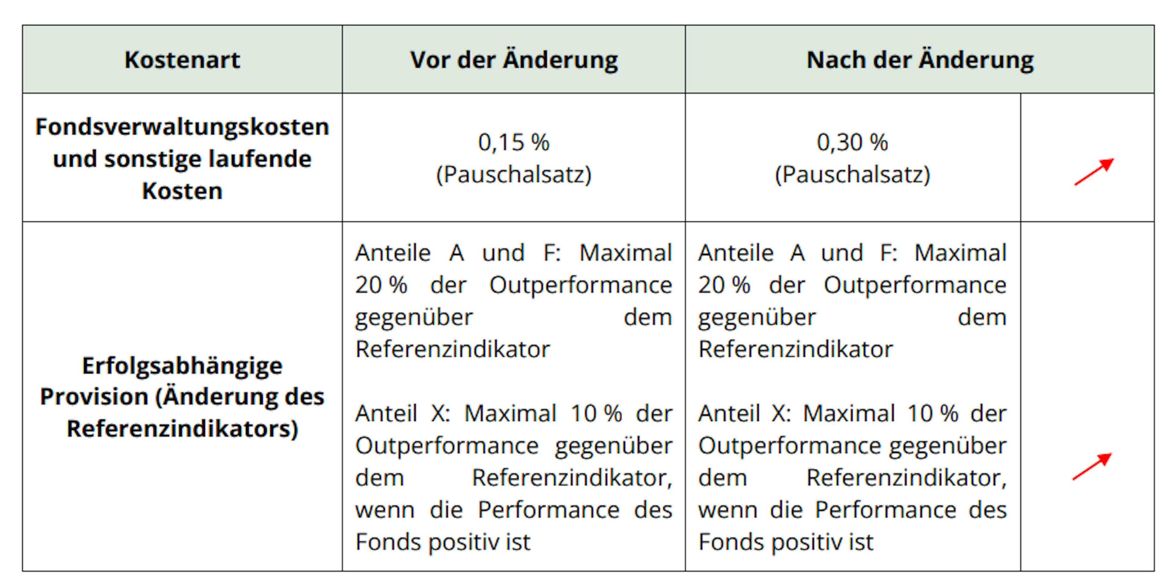 Die Anpassung erfolgt im Einklang mit dem regulatorischen Rahmen und ermöglicht die fortlaufende Gewährleistung der für den Fonds erforderlichen Dienstleistungen.
