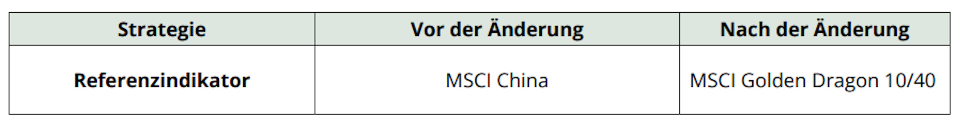 Der neue Referenzindikator ist der MSCI Golden Dragon 10/40 Index.