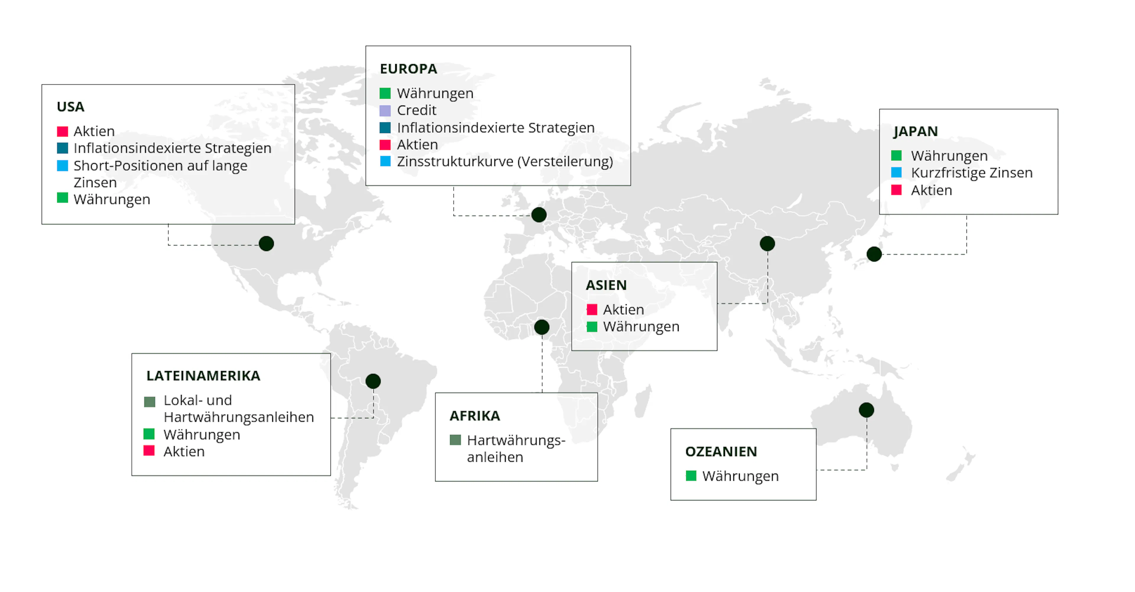 Diese Instrumente können in verschiedenen Anlageklassen eingesetzt werden, darunter Aktien, Zinsen, Währungen und Volatilität, mit dem Ziel, die Auswirkungen starker negativer Marktbewegungen auf die Performance des Portfolios zu begrenzen.