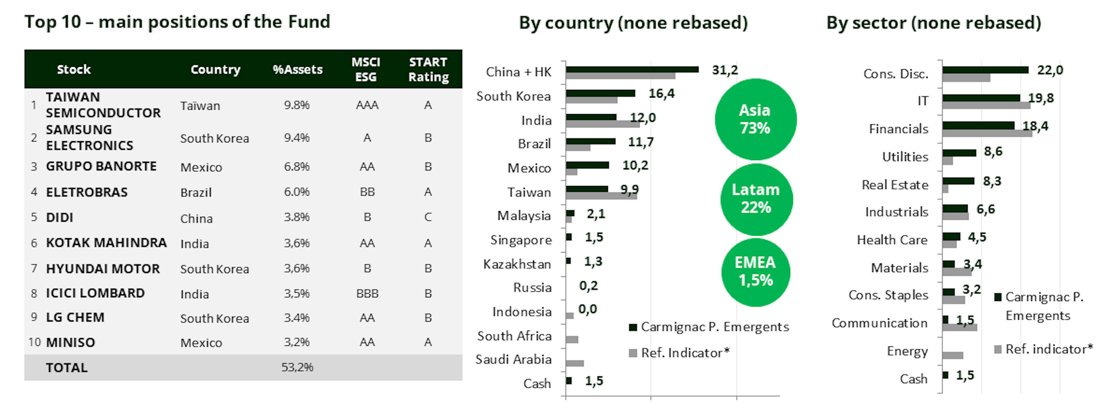 | Carmignac Portfolio Emergents | + 15.4 % | + 6.1 % | + 7.1 % |