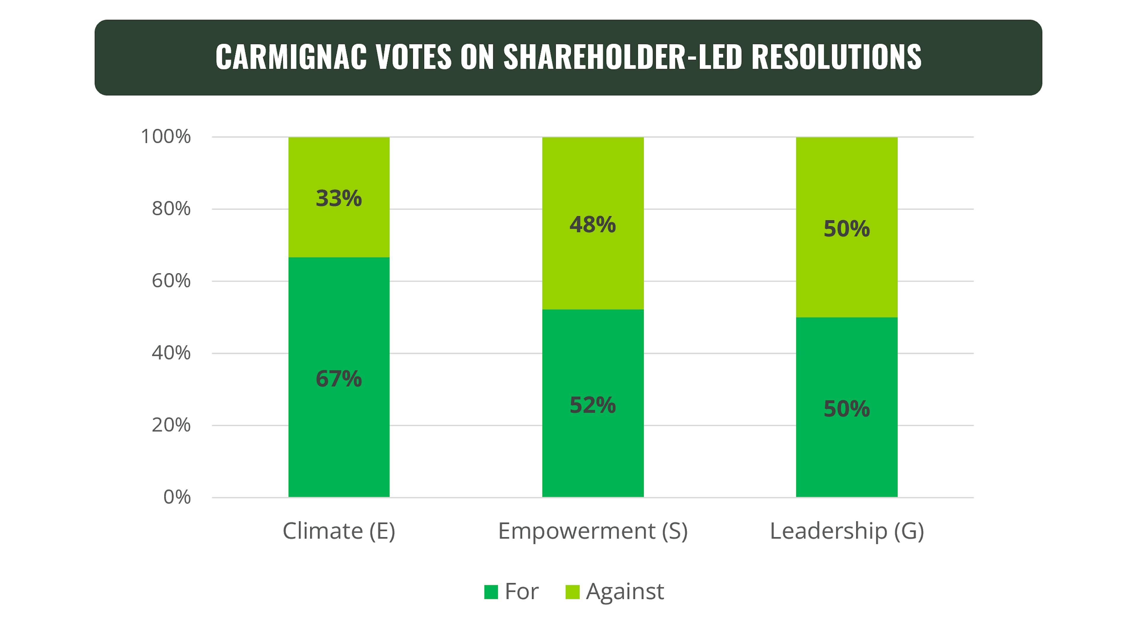 2The votes we refer to in this article refer to all our votes across our two legal entities: Carmignac Gestion and Carmignac Gestion Luxembourg. Data is based on Carmignac calculations using data stored in ISS ProxyExchange.