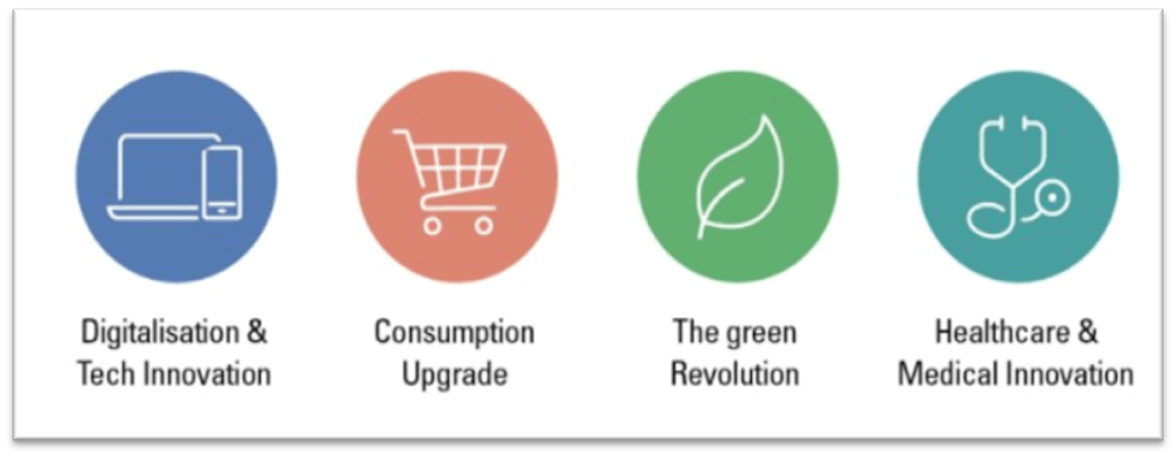 1. A differentiated and selective approach focusing Chinese New Economy sectors, the most attractive segments of the Chinese market, to benefit from 4 structural themes that we have identified