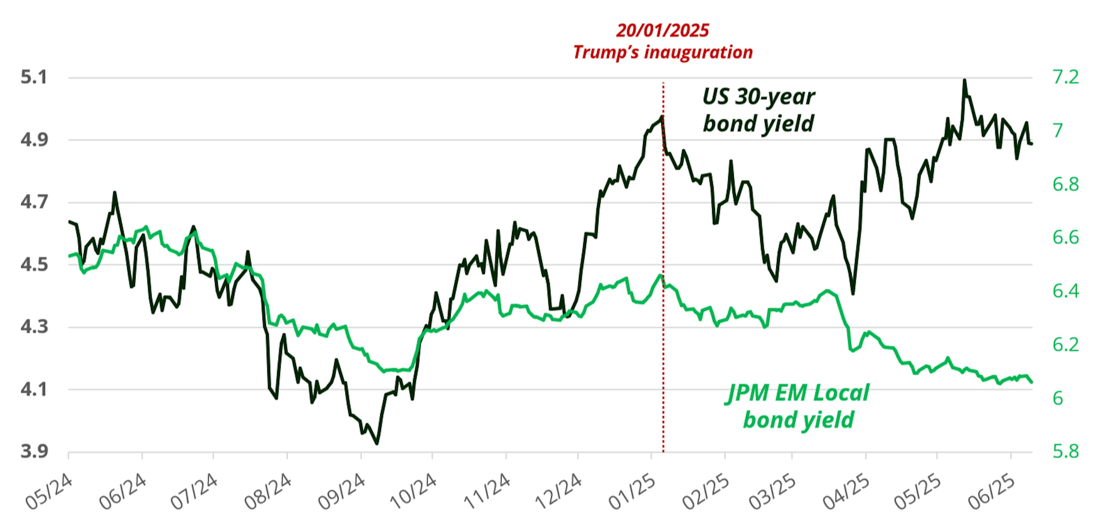 Some EM countries, like Mexico, benefit from the trade wars, given its attractiveness for US ‘nearshoring’ and a good political relationship. Mexican President Claudia Sheinbaum has been strengthening this in recent times, cooperating on increasing security along the US/Mexico border and ultimately helping Trump to progress his agenda.