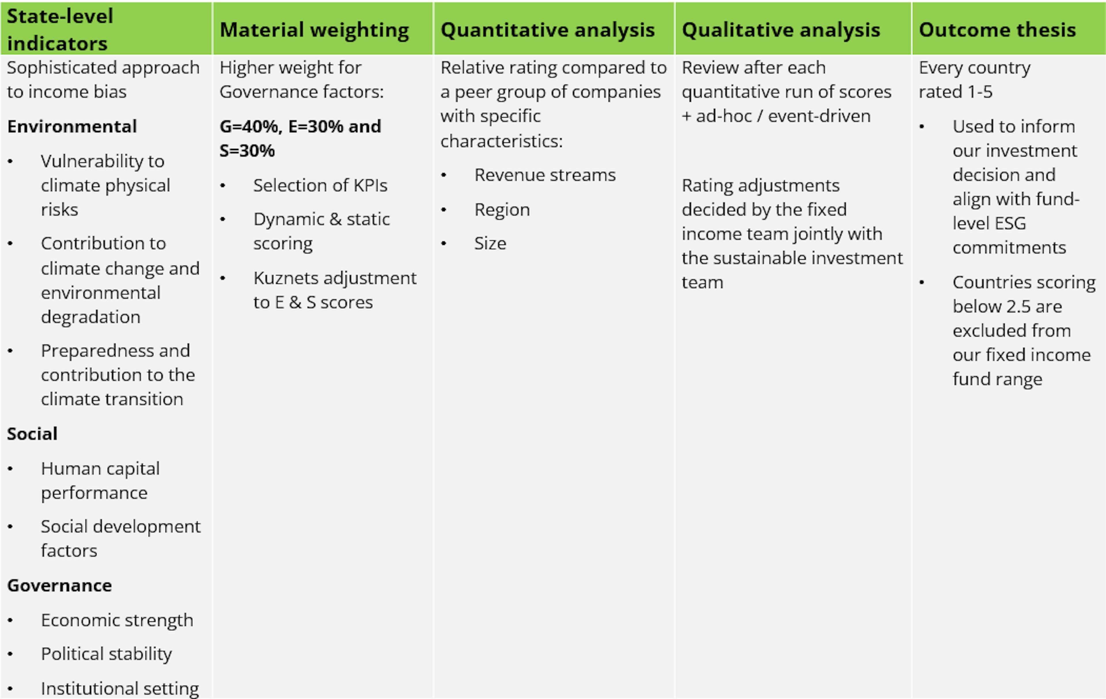 Proprietary ESG analysis is embedded into the selection process for each security, alongside an outcome thesis and metric where relevant