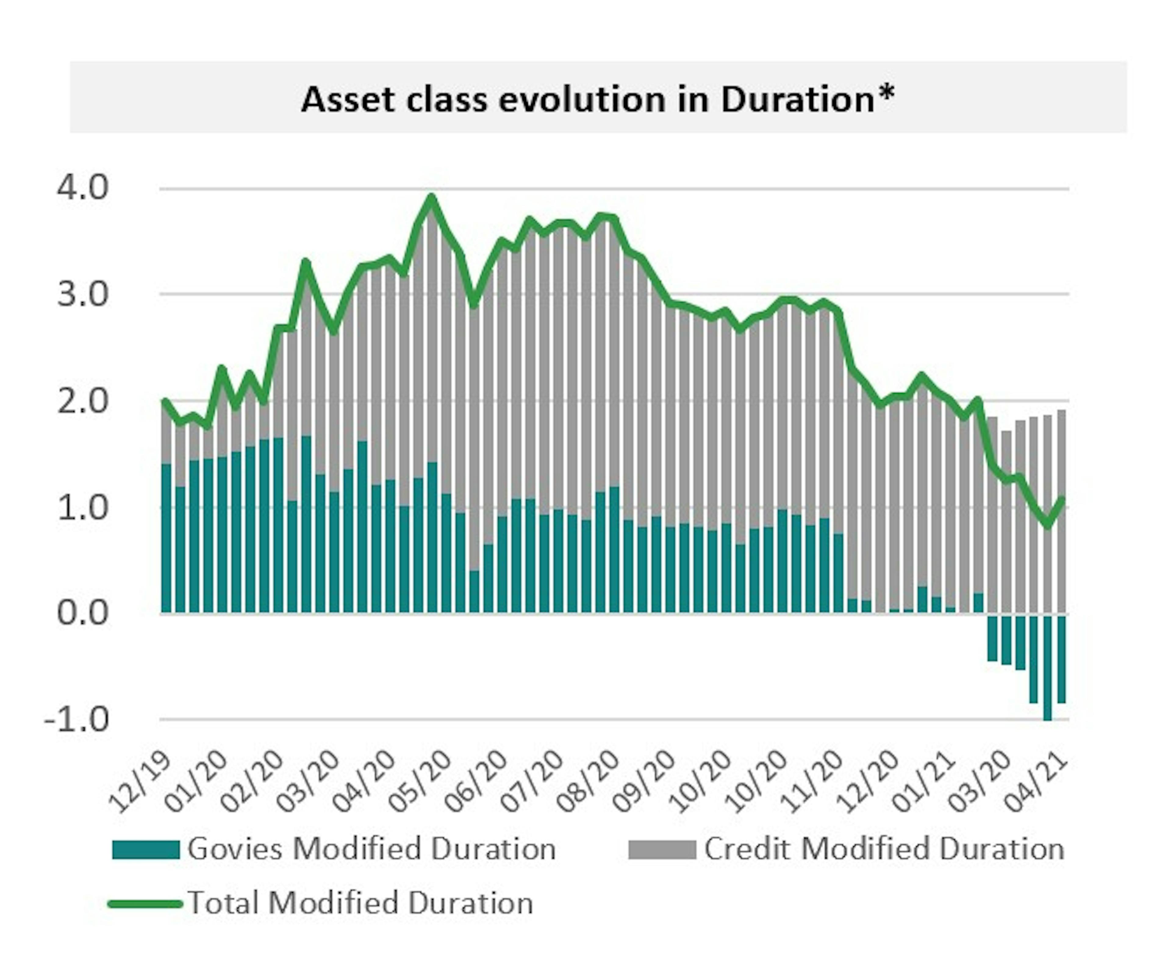 In the months to come, we plan to stick with a portfolio construction that generated positive performance in the first three months of 2021. The bulk of our government-bond shorts may well shift from the US and UK to the eurozone, which we believe will catch up in terms of yields as the bloc catches up in vaccination rates and the re-opening of the economy.