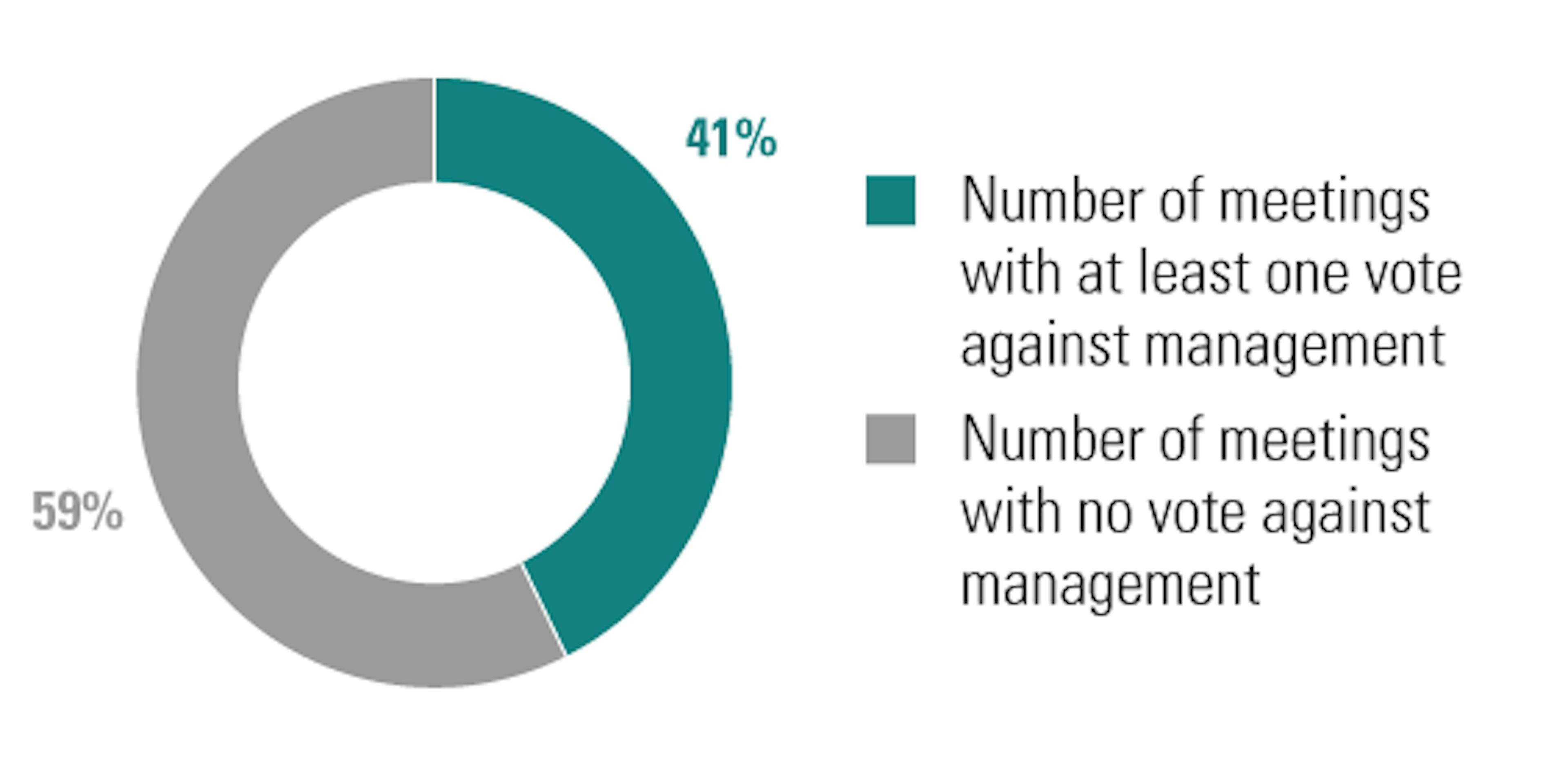 As active investors, we use our shareholder rights to drive companies to improve their carbon footprint, human capital management and their governance. In 2021, Carmignac voted against the management of our investee companies at least once at 41% of meetings voted: