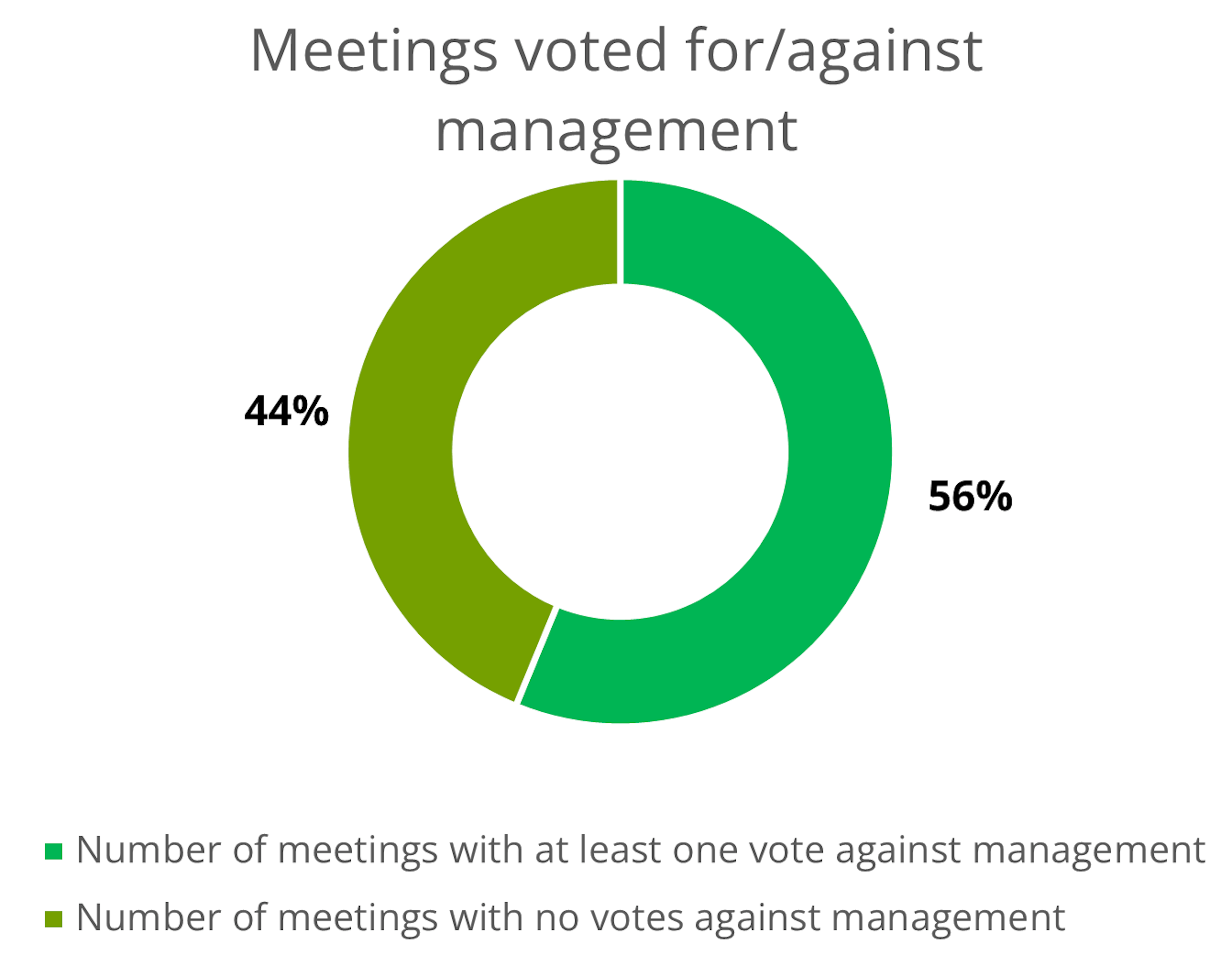 *This data refers to the number of meetings where Carmignac took a vote position against the recommendation of the board. In practice, this refers to votes cast against management-led resolutions and, in most cases, votes cast for shareholder-led resolutions (unless the shareholder-led resolution is supported by management).