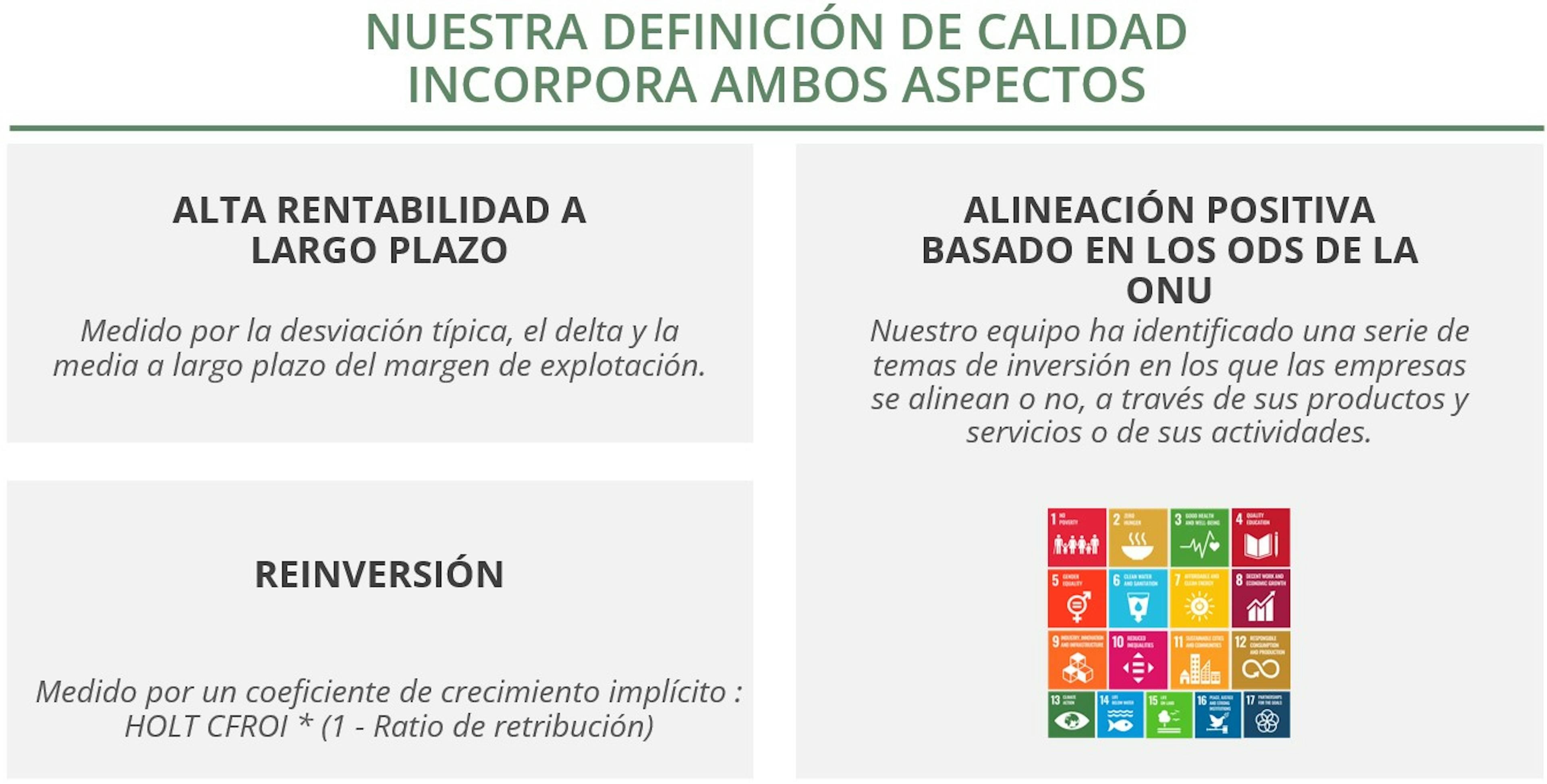 | Exposición a empresas capaces de generar altos rendimientos de sus inversiones | 23% Rentabilidad de los fondos propios del fondo frente al 14% del MSCI World |