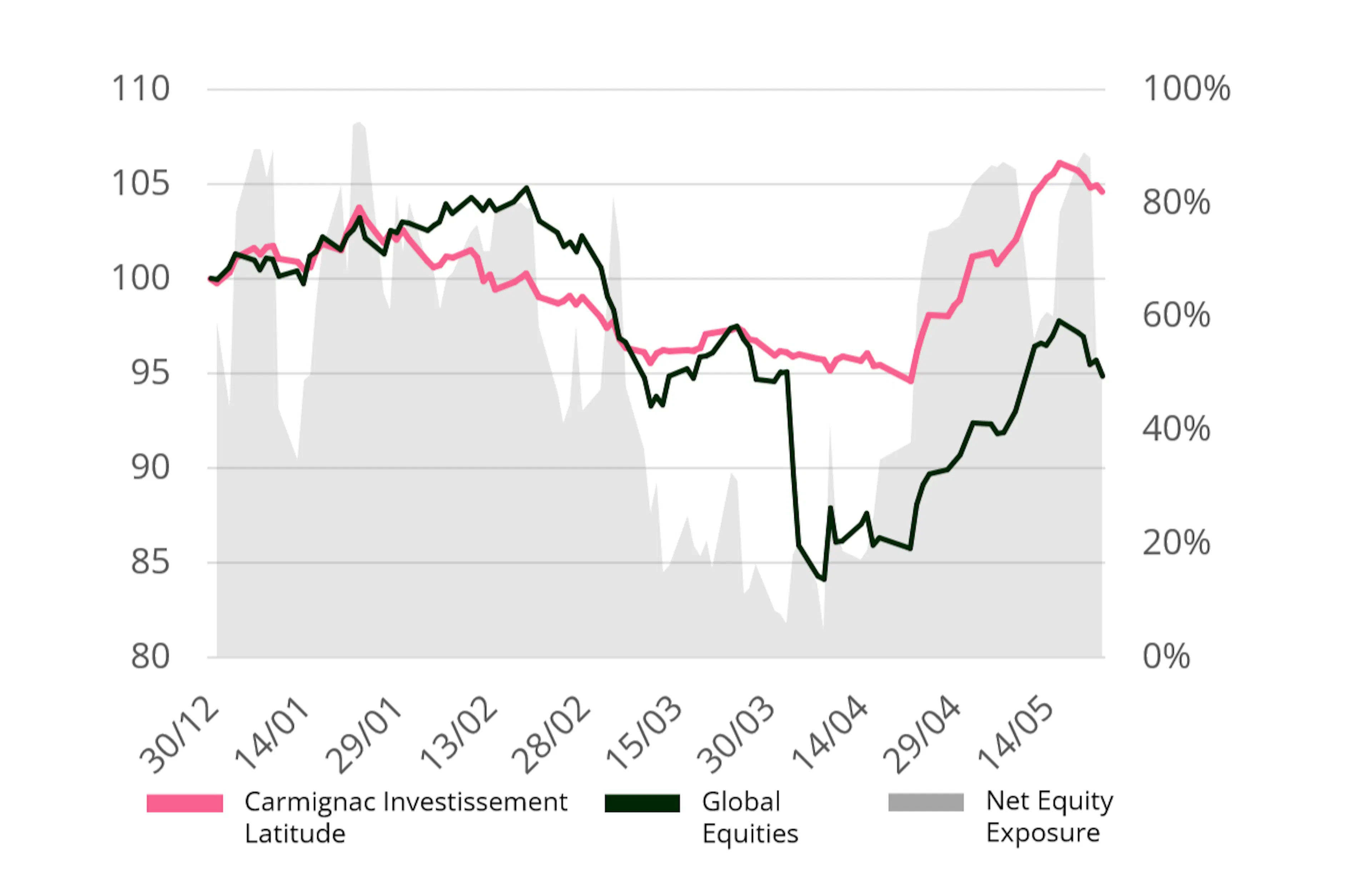 Esta secuencia ilustra a la perfección la filosofía de Carmignac Investissement Latitude: reducir la exposición en períodos de tensión y reposicionarse rápidamente cuando las condiciones mejoran.