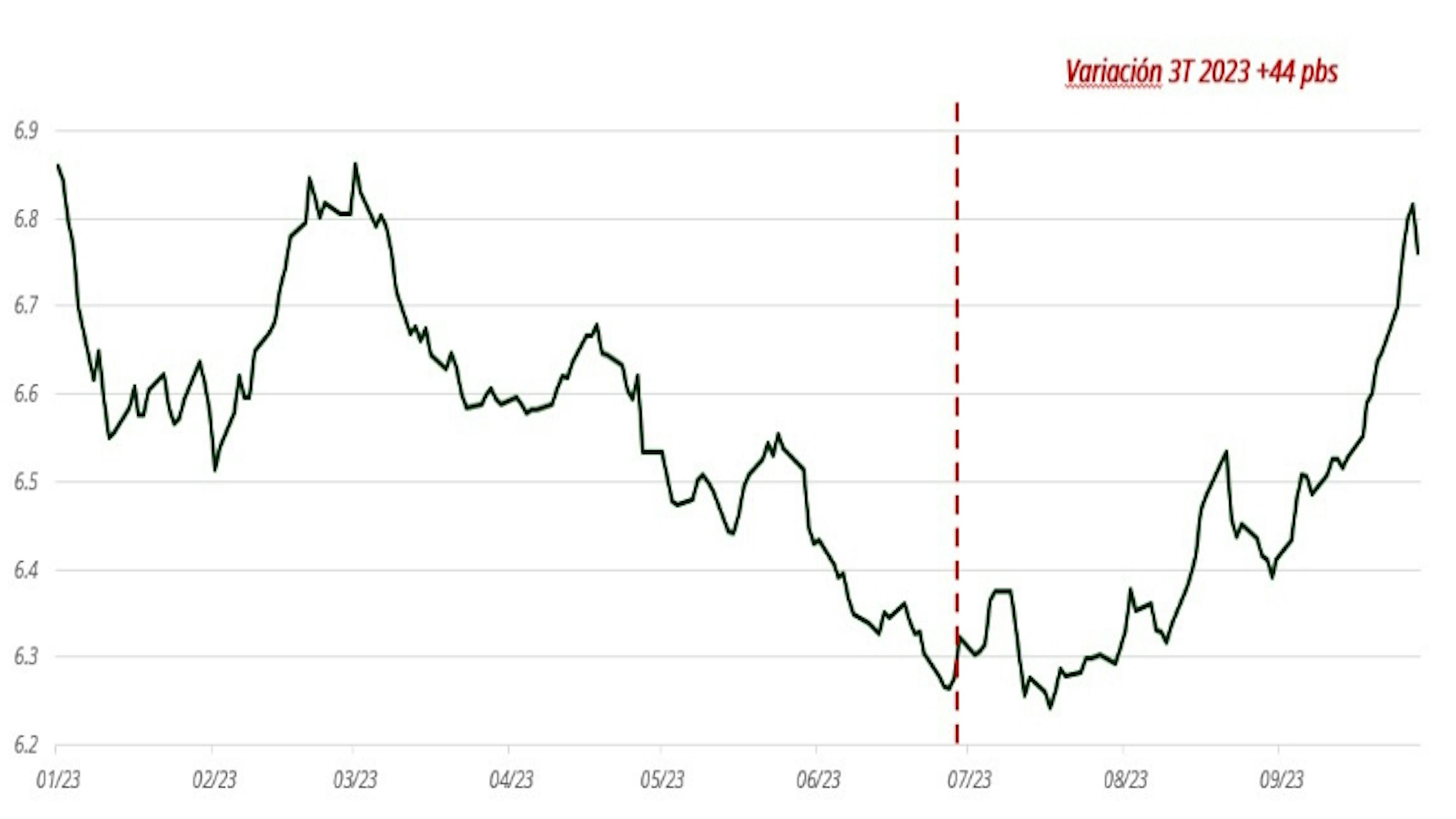 El tercer trimestre de 2023 estuvo marcado por unos tipos de interés más altos a escala mundial y un entorno de volatilidad. De hecho, a pesar de la que quizás haya sido la última subida de tipos del actual ciclo del Banco Central Europeo (BCE) y de la pausa de la Reserva Federal (Fed), los discursos de línea dura de los responsables de los bancos centrales impulsaron el bono del Tesoro estadounidense a 10 años del 3,84% a más del 4,57%, mientras que el bund alemán a 10 años escaló desde cerca del 2,39% a más del 2,84%, marcando los máximos del año. En efecto, la energía, que ha sido una de las principales fuentes de desinflación, volverá a contribuir al alza de los precios a finales de año, tras la decisión de la OPEP (impulsada principalmente por Rusia y Arabia Saudí) de prorrogar sus recortes de producción. Esto penalizará el poder adquisitivo de los hogares, pero también ralentizará el retorno de la inflación a los objetivos de los bancos centrales.