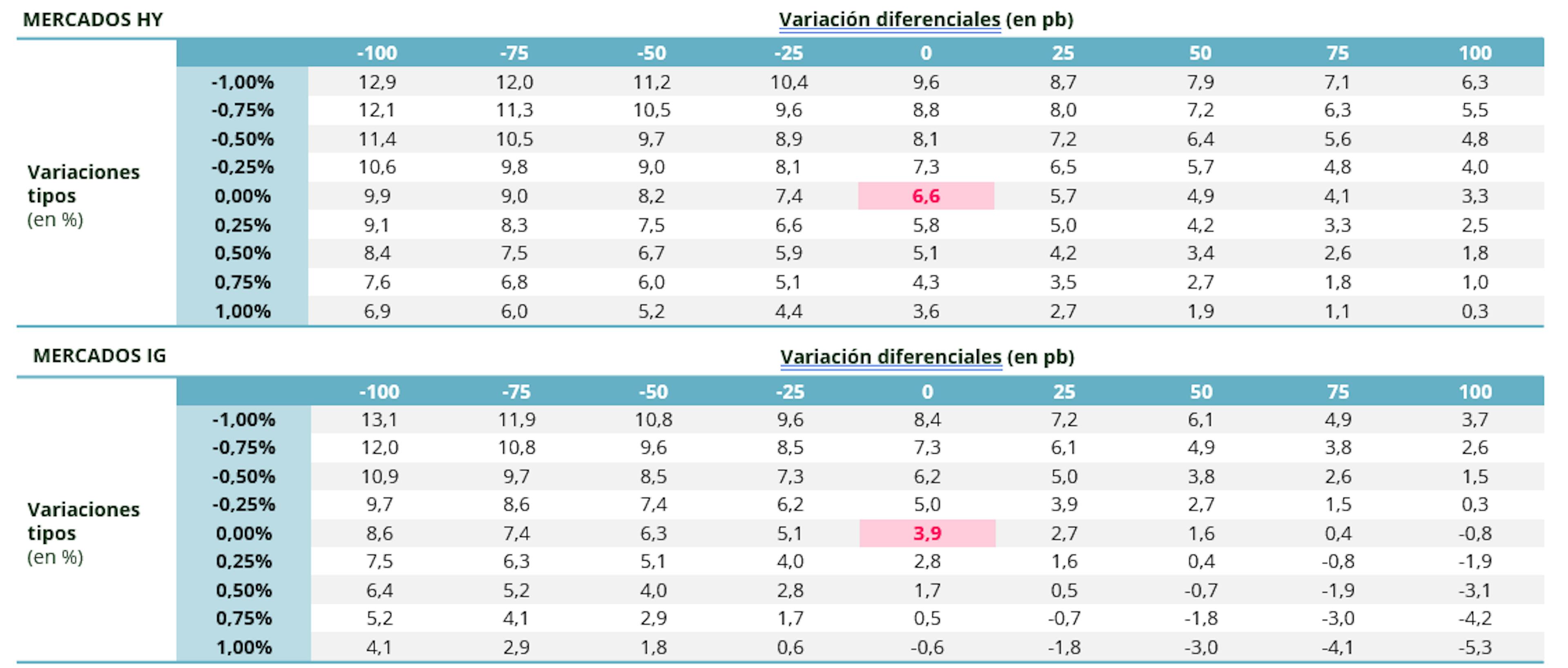 Evidentemente, el nivel de rendimientos integrados en una cartera permite soportar cierta volatilidad. Con una Yield To Worst del 6%, se necesitarían dos semanas de carry para compensar el impacto negativo de un alza de 5 puntos básicos en las rentabilidades de los bonos; en 2021 se habrían necesitado dos meses.