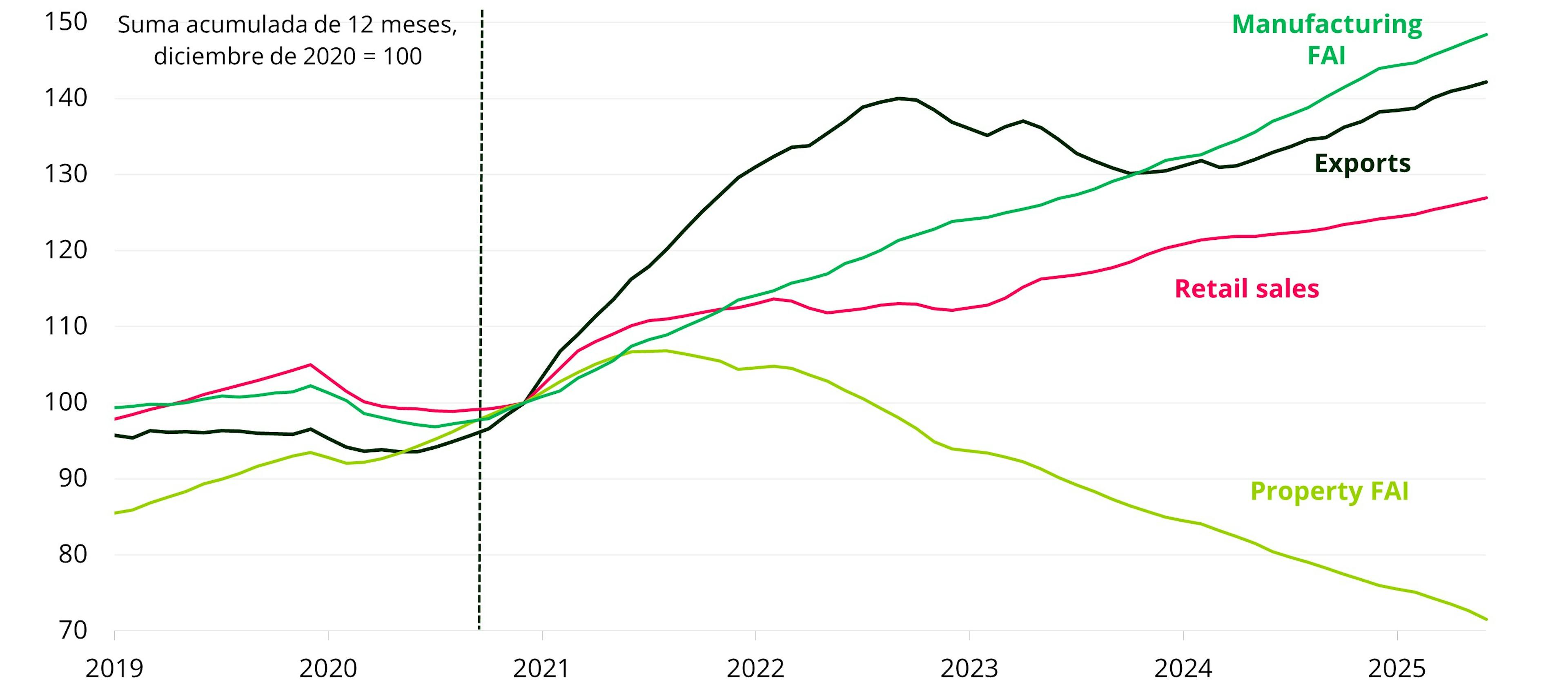 Como resultado, parece estar surgiendo una economía de dos velocidades. Mientras que las exportaciones y la industria manufacturera siguen respaldando la economía, el mercado inmobiliario aún no se ha recuperado y es necesario reavivar la confianza de los consumidores para que se produzca un nuevo ciclo de crecimiento sostenible.