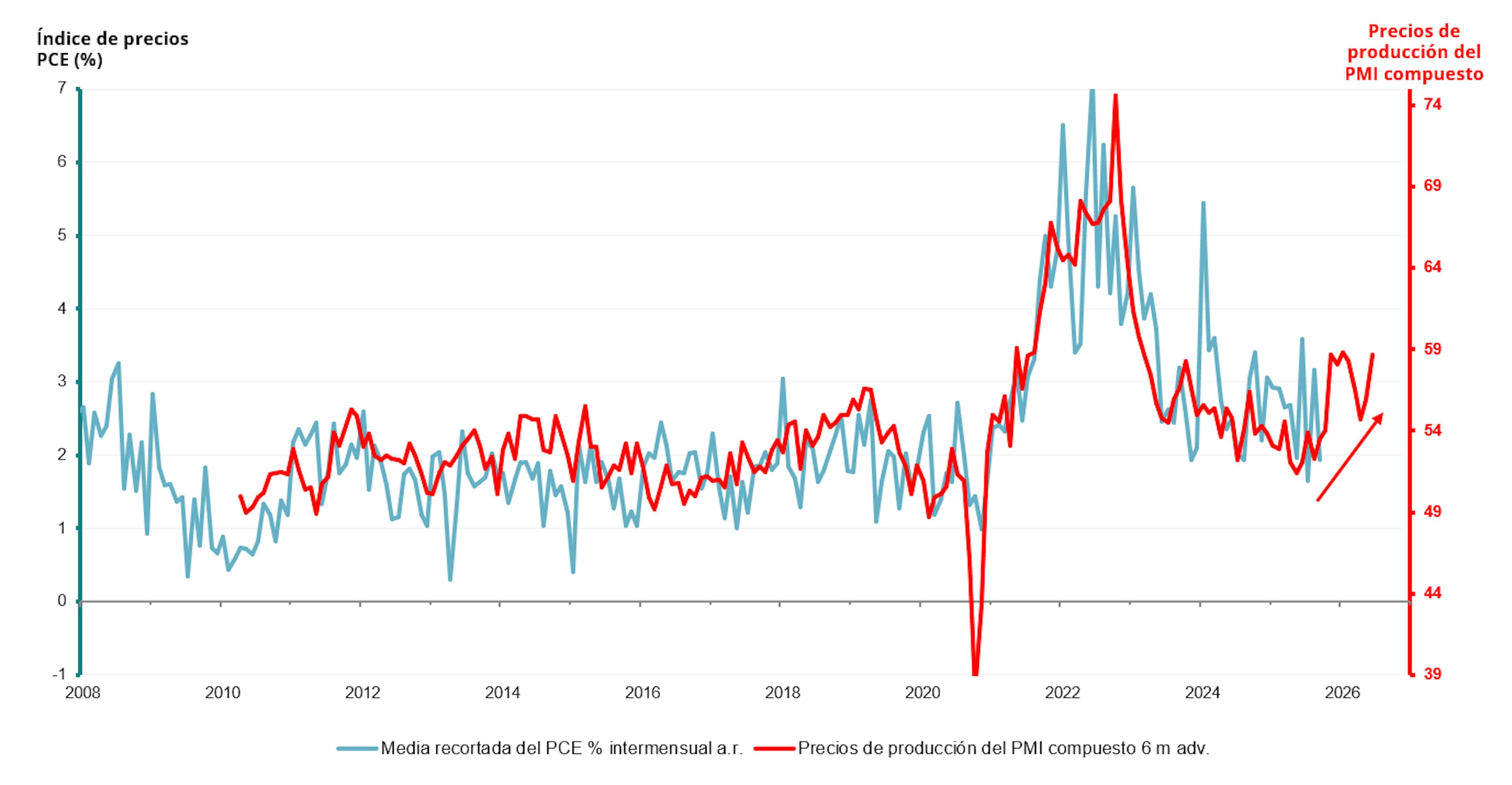• También podemos extender esta tendencia a la zona euro, donde la inflación se ha beneficiado significativamente de la disminución de los precios de las materias primas en 2025, pero sigue estando por encima del objetivo del 2 % fijado por el BCE , con cierto riesgo de resurgimiento por las mismas razones de estímulo fiscal y proteccionismo.