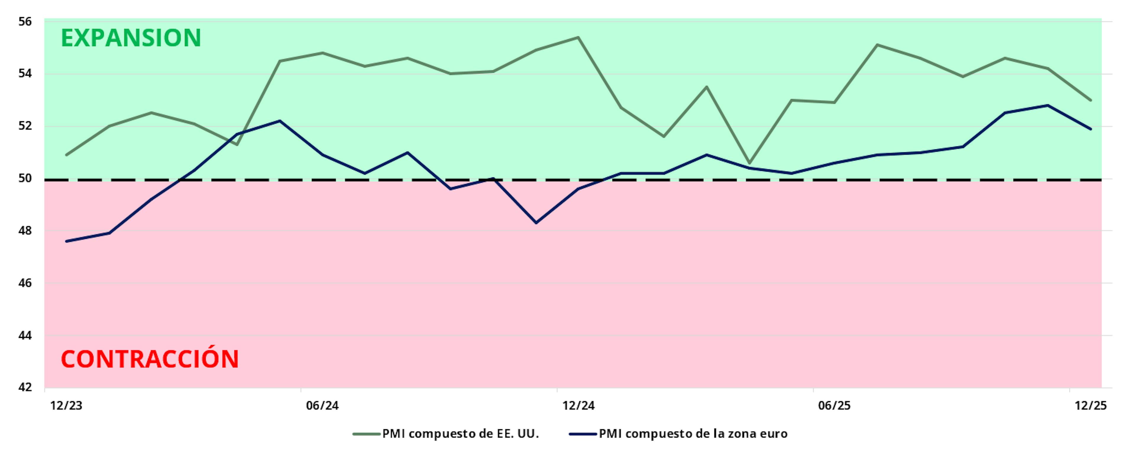 Figura 1: Los indicadores adelantados apuntan a la resiliencia de la actividad a ambos lados del Atlántico