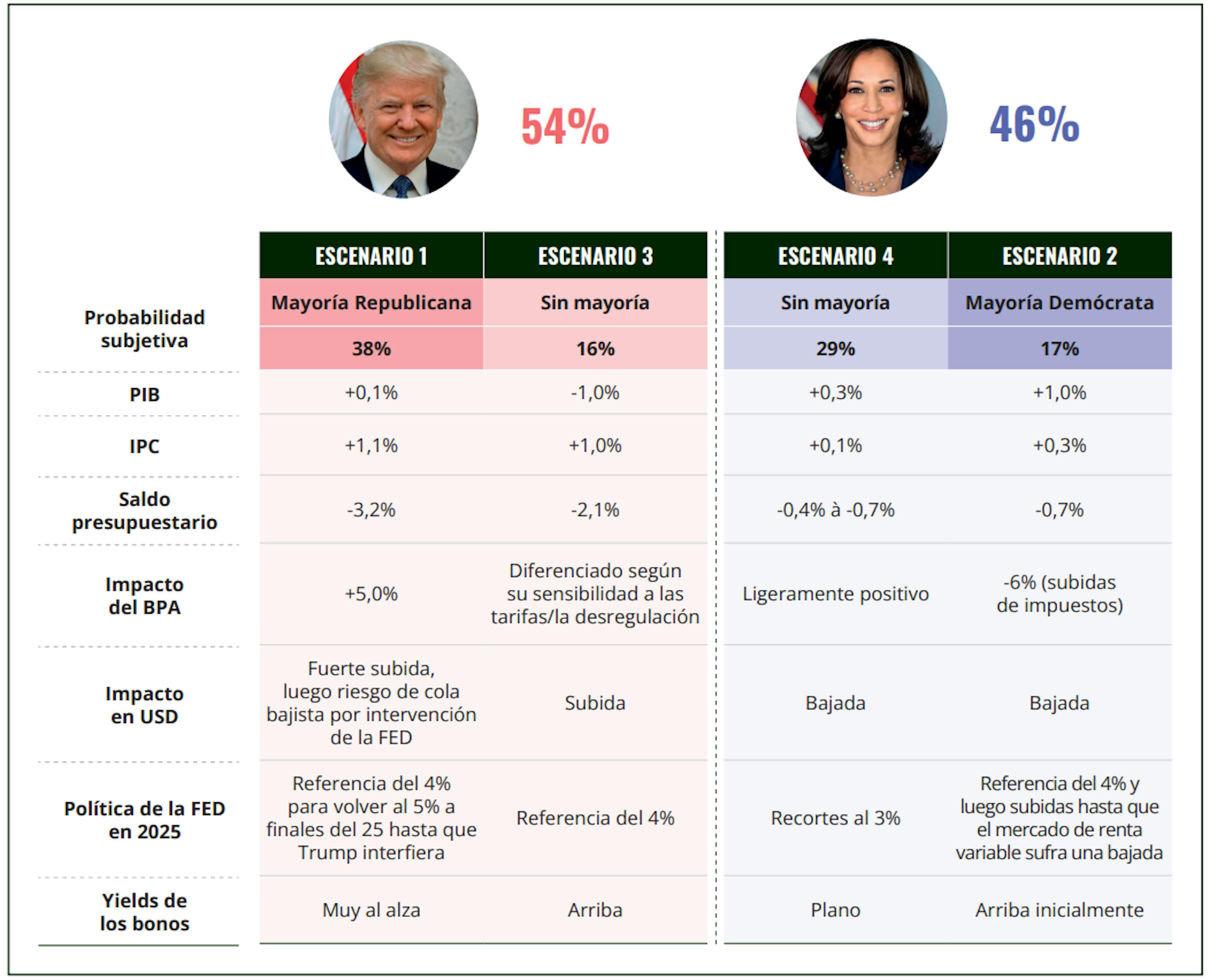 Raphaël Gallardo, Kevin Thozet y Lloyd McAllister analizan el posible impacto del resultado de las elecciones estadounidenses en la economía, en los mercados, en la asignación de activos y en las inversiones sostenibles.
