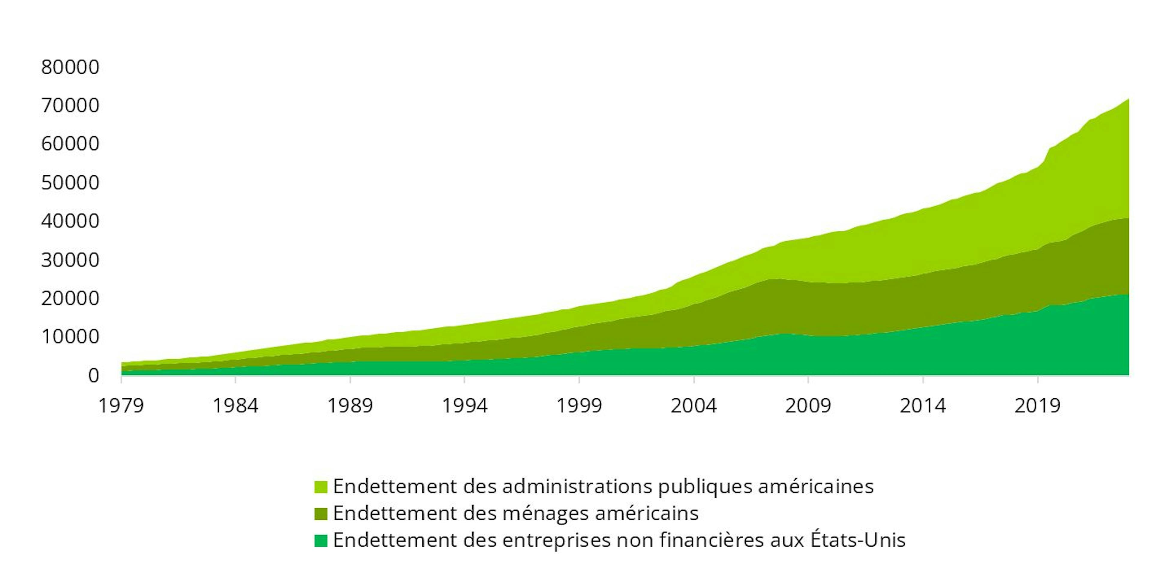 Évolution de l'endettement des agents économiques américains (milliards d'USD en termes nominaux)