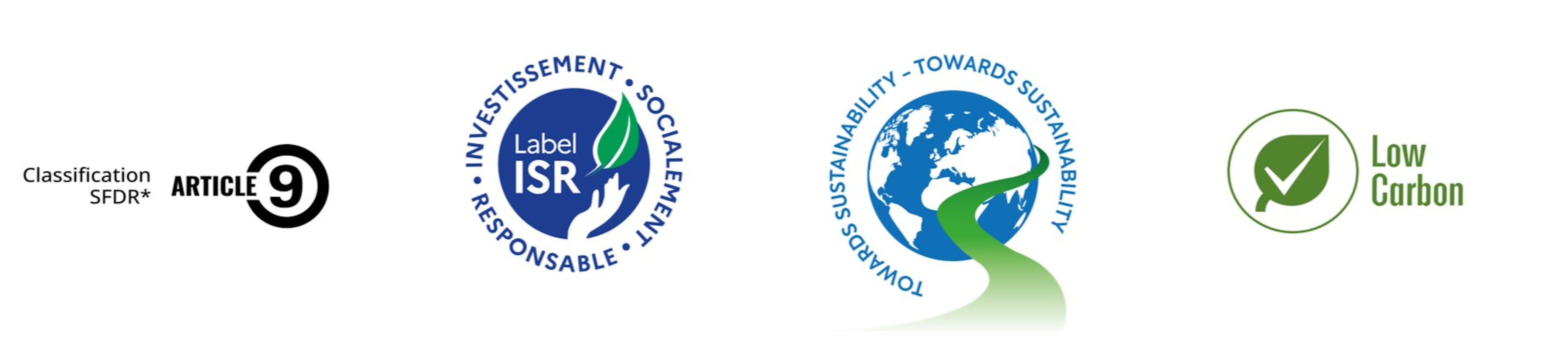 La composition du portefeuille peut évoluer dans le temps. Les marques et logos n'impliquent aucune affiliation avec les entités respectives ni aucune approbation de leur part. La référence à un classement ou à un prix ne constitue pas une garantie des résultats futurs de l'UCIS ou du gestionnaire. *https://www.lelabelisr.fr/en/ ; https://www.towardssustainability.be/ ; https://www.febelfin.be/fr ; Investissement socialement responsable, https://www.carmignac.fr/fr_FR/nous-connaitre/investissement-socialement-responsable-isr-1252. Labels ISR et Febelfin obtenus respectivement en janvier et février 2020. Classification du fonds SFDR : Article 9 à partir du 1er janvier 2022. Règlement sur la divulgation des informations relatives à la finance durable (SFDR) 2019/2088. Pour plus d'informations, veuillez-vous référer à EUR-lex.
