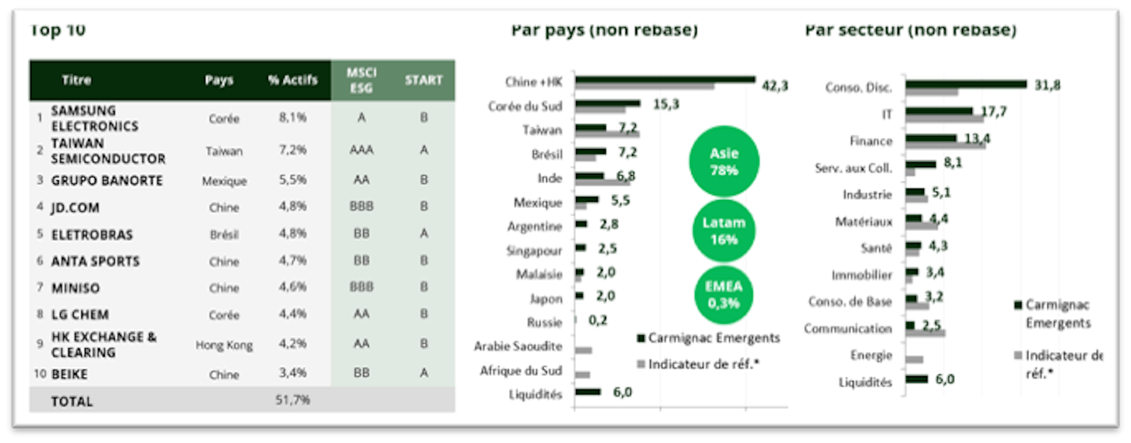 | Carmignac Portfolio Emergents | + 15.4 % | + 6.1 % | + 7.1 % |