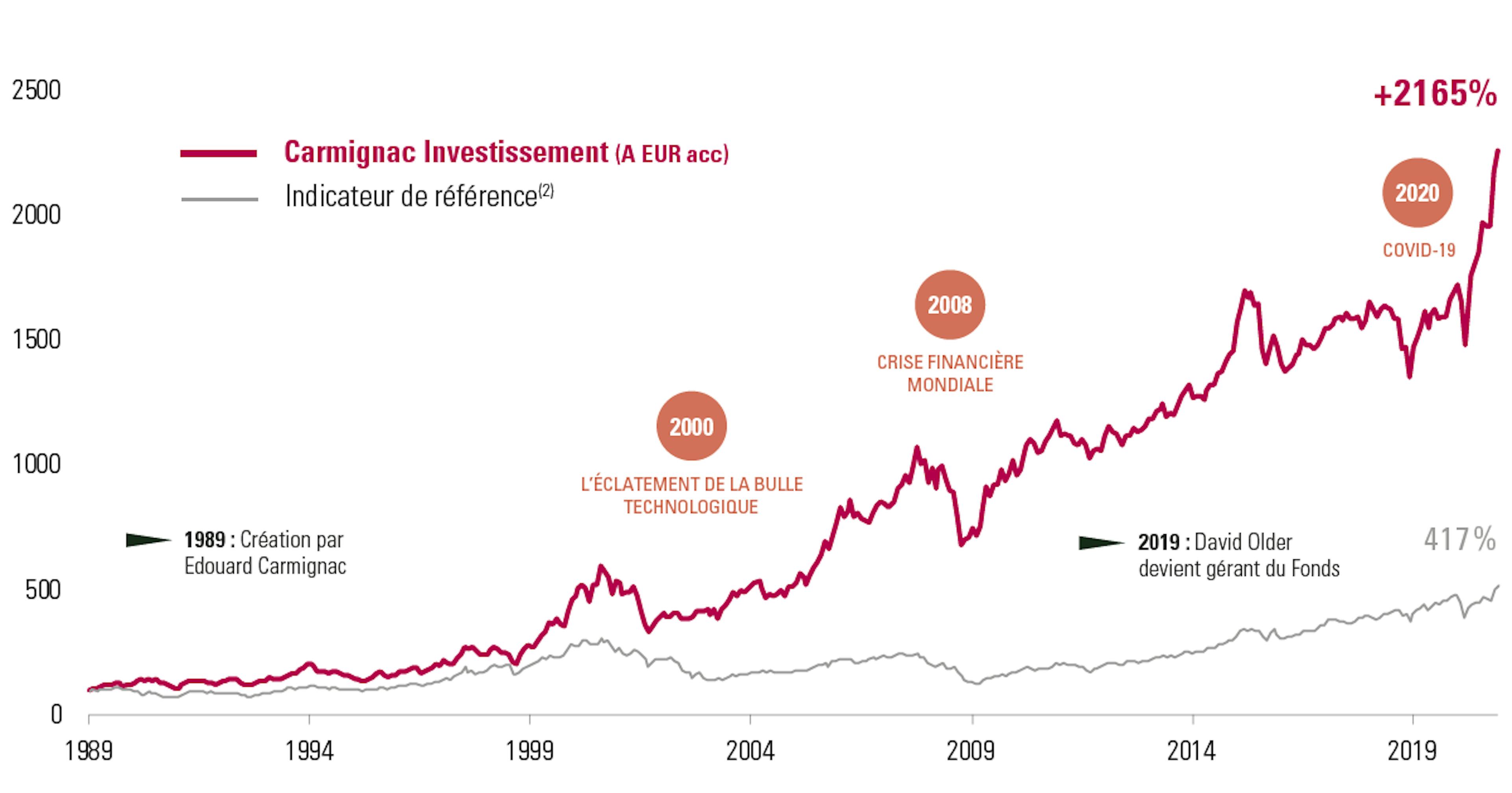 Depuis son lancement en 1989 par Edouard Carmignac, Carmignac Investissement a démontré sa capacité à identifier les tendances de long terme et à saisir les opportunités des marchés actions à l’échelle mondiale quelles que soient les conditions de marché.