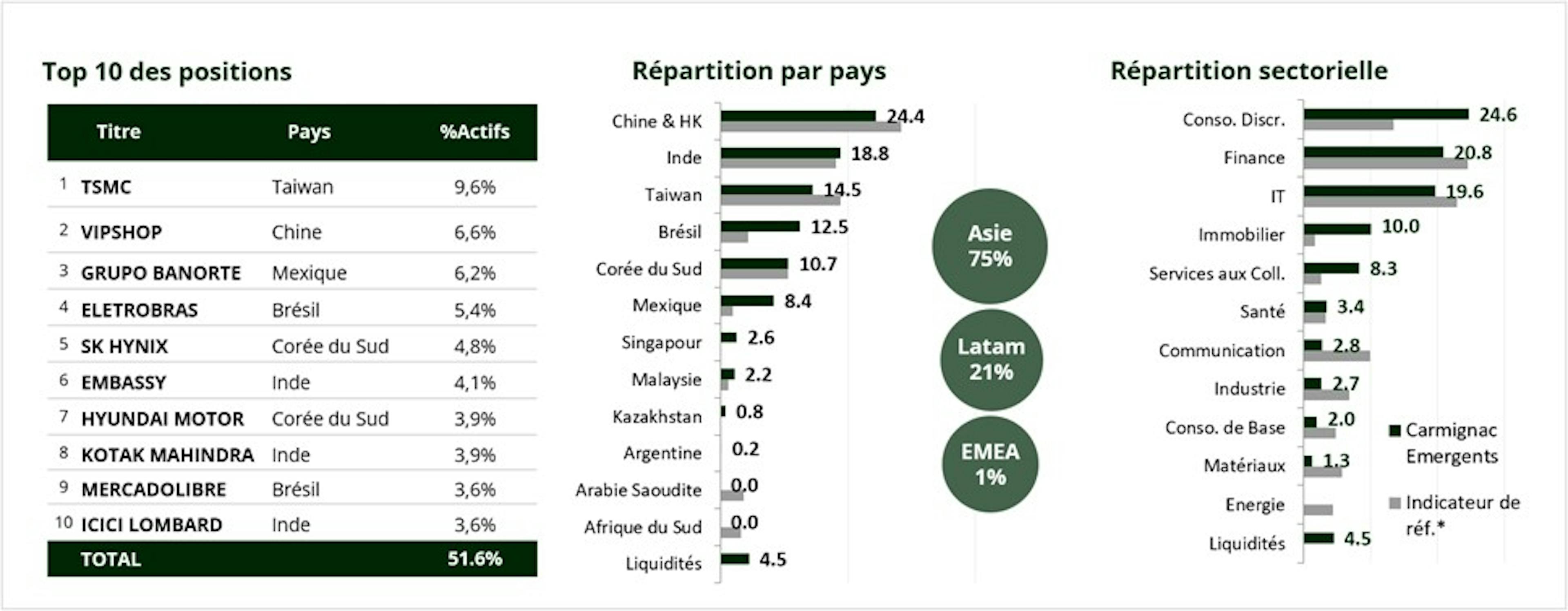 Ce trimestre a également été marqué par le renforcement de l’équipe de gestion, avec l’arrivée de Naomi Waistell en tant que co-gérante de Carmignac Emergents. Forte de près de 16 années d’expérience dans la gestion des marchés émergents, Naomi adhère pleinement à la philosophie d’investissement du fonds axée sur des sociétés de qualité, affichant de solides perspectives de croissance et un modèle économique robuste, capables de générer un autofinancement suffisant pour maintenir leur performance, y compris en période de ralentissement économique.