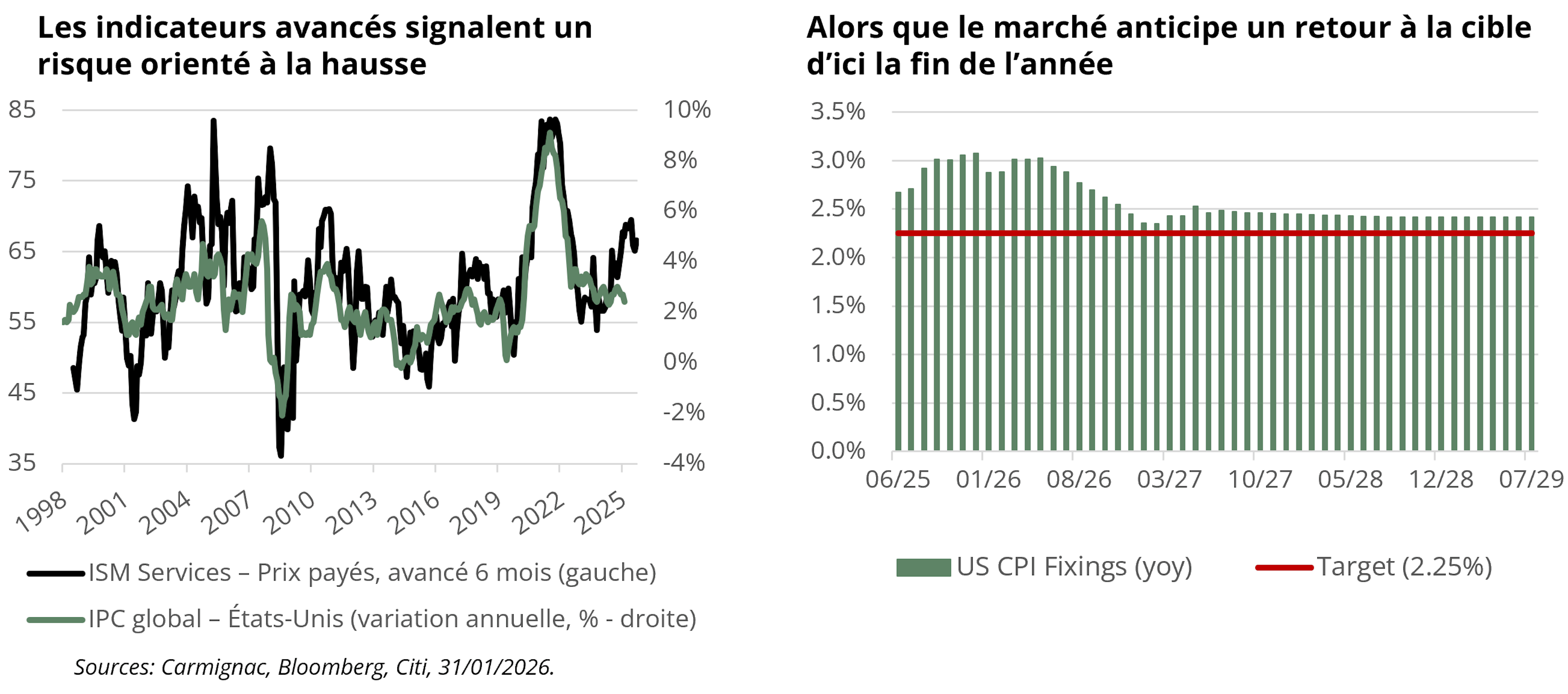 • Les risques inflationnistes demeurent orientés à la hausse aux États-Unis et au Japon, tandis que la désinflation est plus avancée en zone euro.