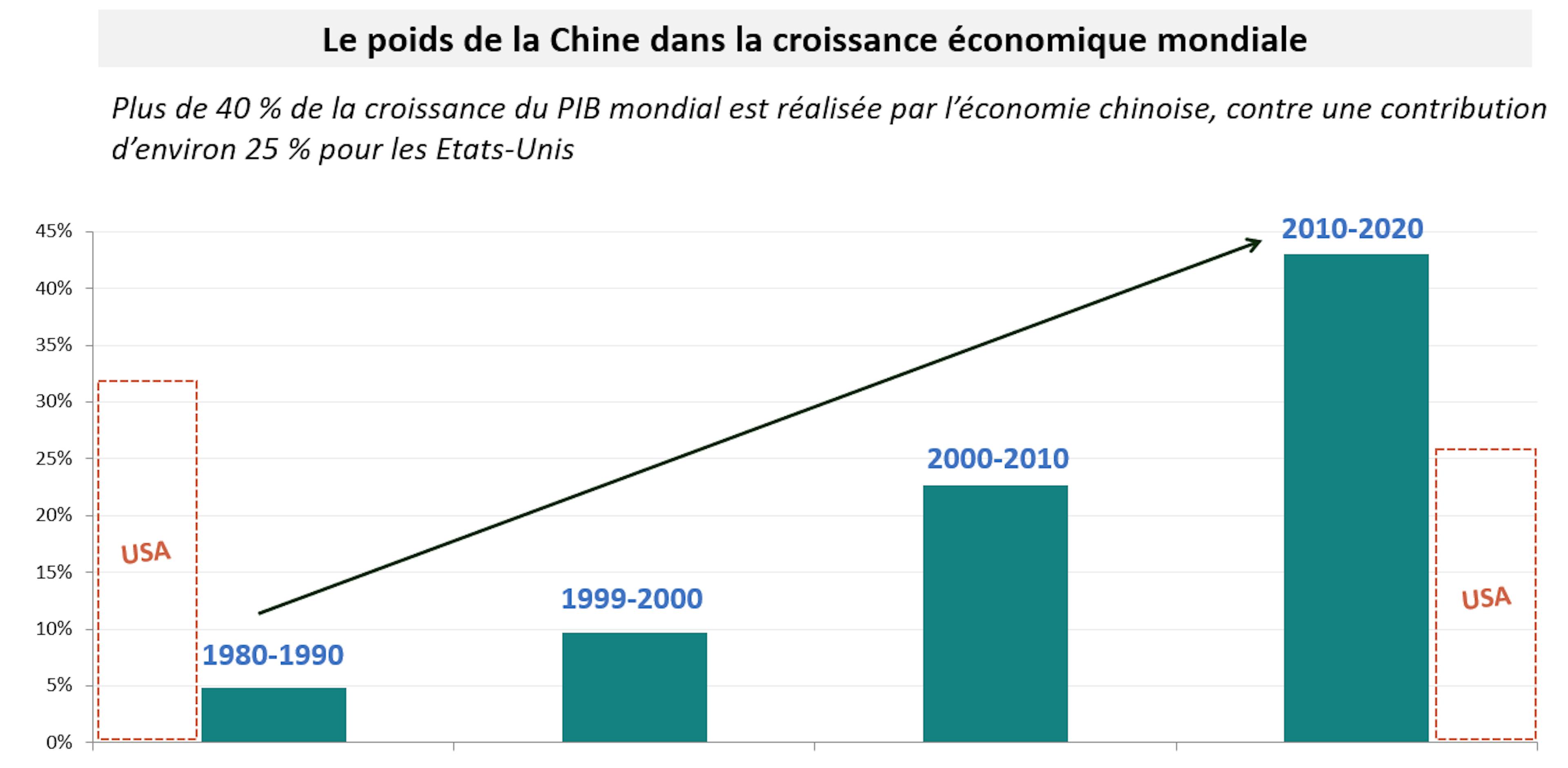 Illustrant sa force, l’économie chinoise fut la seule grande puissance mondiale à avoir échappé à la récession en 2020 à la faveur d’une meilleure gestion de la crise sanitaire, ce qui lui a permis de relancer rapidement son industrie et la consommation dans le pays. Elle est désormais l’un des principaux moteurs de la croissance mondiale. Selon l’OCDE, l’économie chinoise devrait croître de près de 8 % (+7,8 %) en 2021, après avoir progressé de 2,3 % l’an dernier, quand la zone euro devrait voir sa croissance rebondir cette année de 3,9 % après une chute de 6,6 % en 2020.
