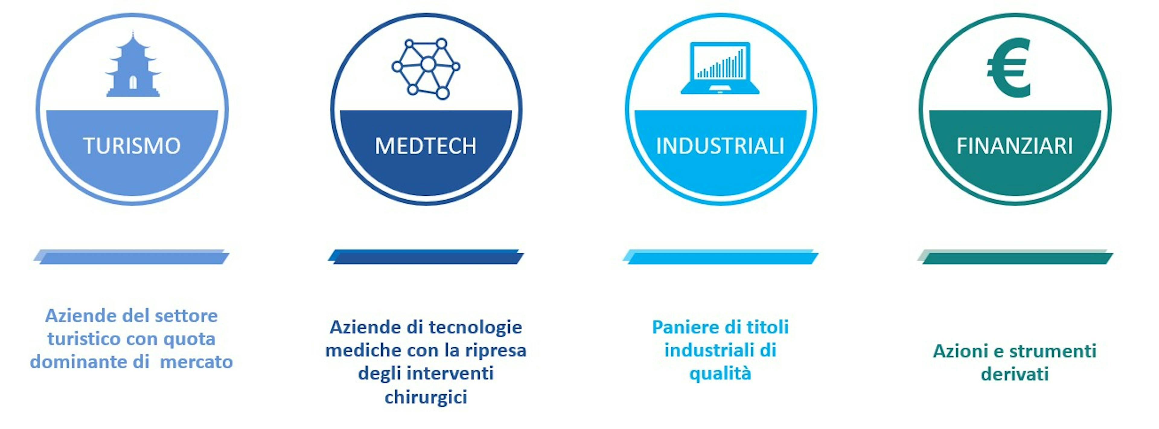 Sul lungo periodo riteniamo che le azioni a crescita secolare, che abbiamo individuato nei settori tecnologico e internet, ma anche healthcare e dei consumi, continueranno a registrare performance positive grazie alle loro ottime prospettive di crescita e ai modelli di business. Tuttavia, manteniamo la prudenza nei confronti dei titoli azionari con valutazioni elevate, e prendiamo profitti in quei titoli maggiormente sostenuti dall’economia del “confinamento” e nelle società cinesi.