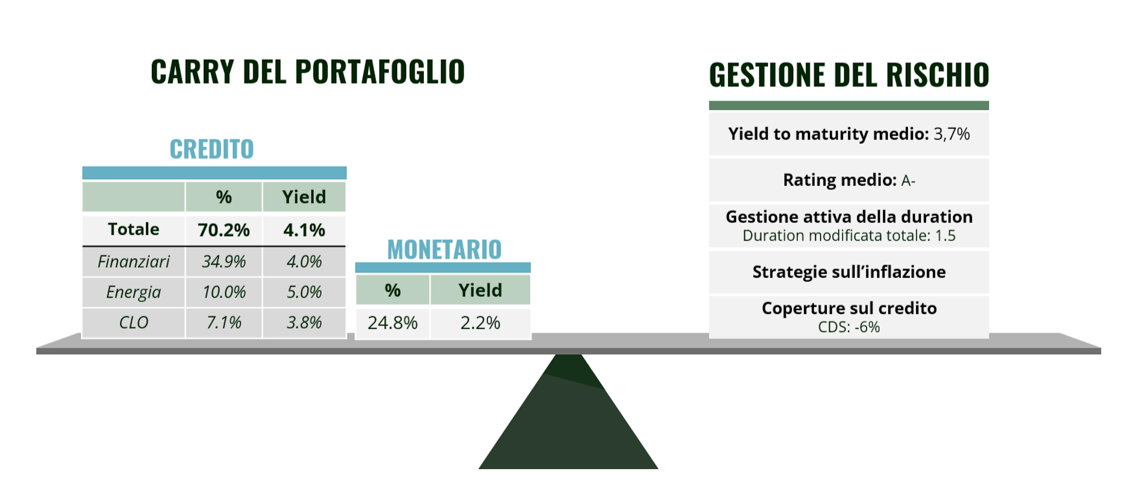 Un YTM del 3,6%, pur essendo leggermente in calo rispetto a un anno fa, rimane ben al di sopra della media decennale. Questo rendimento, che si basa principalmente su obbligazioni a breve scadenza, è una proiezione particolarmente affidabile della performance futura quando i rendimenti sono "alti", come nel caso attuale. Si tratta quindi di un buon punto di partenza, che può essere ottimizzato grazie alle molteplici fonti di rendimento del Fondo, tra cui la gestione attiva della duration e la selezione dei titoli di credito.