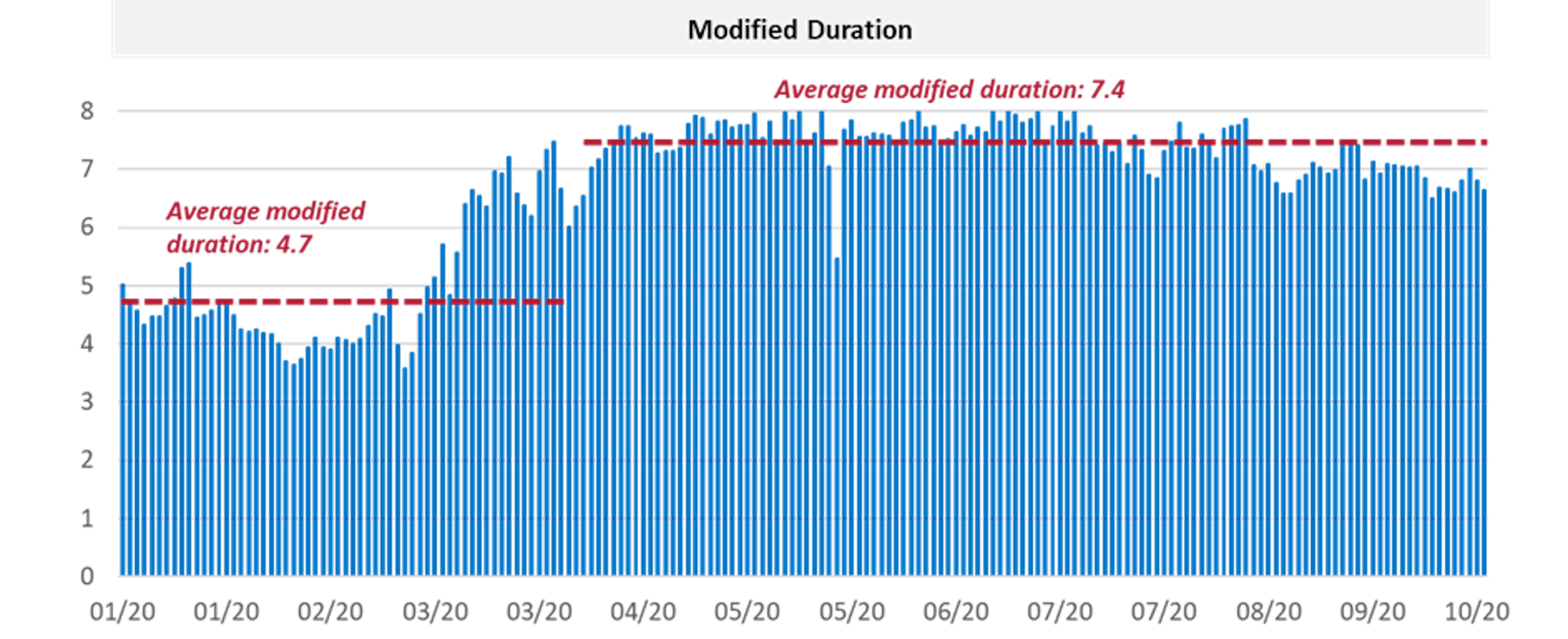 During the quarter, we maintained our very high duration between 6.5 and 8. In September, we began mildly reducing our overall modified duration, keeping it below 7 years.
