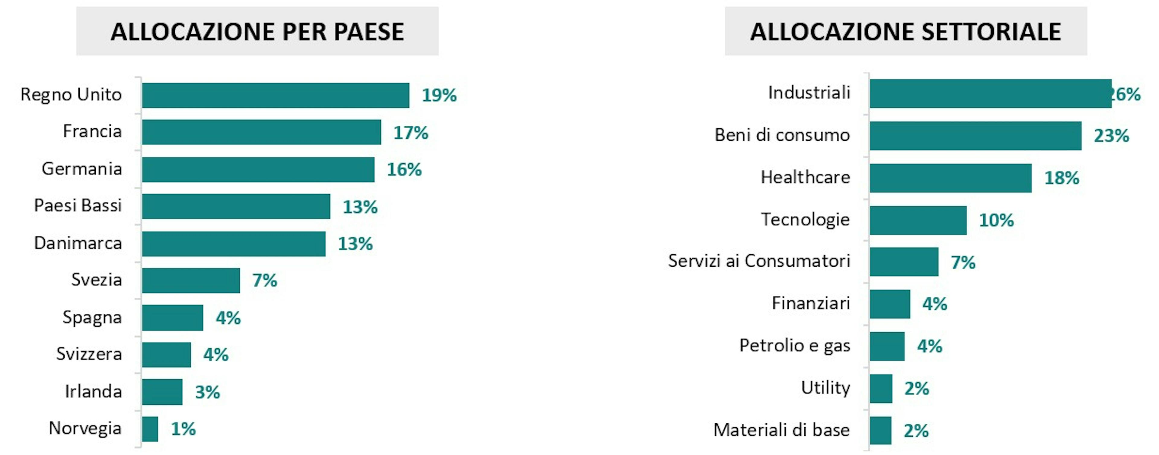 Con l’inizio del 2021, la struttura del portafoglio nel suo complesso rimane invariata a causa del processo bottom-up di selezione dei titoli, focalizzato su aziende redditizie con rendimento elevato sul capitale. Riteniamo che con l’avvio della campagna vaccinale contro il Covid, in atto in tutto il continente, sia possibile scontare la fine della crisi e il contemporaneo ritorno alla normalità. Di conseguenza, prevediamo che la ripresa continui a registrare un andamento positivo, e crediamo di essere anche ben posizionati in termini di quella forte tendenza in atto che è la consapevolezza ambientale, attraverso Orsted (centrali eoliche), Vestas (turbine eoliche), Solaria (centrali fotovoltaiche), Kingspan (isolamento), Schneider (infrastrutture elettriche), e Nel. Siamo inoltre posizionati nella digitalizzazione attraverso le tecnologie, con posizioni quali SAP, Adyen (pagamenti elettronici), and ASML (semiconduttori).
