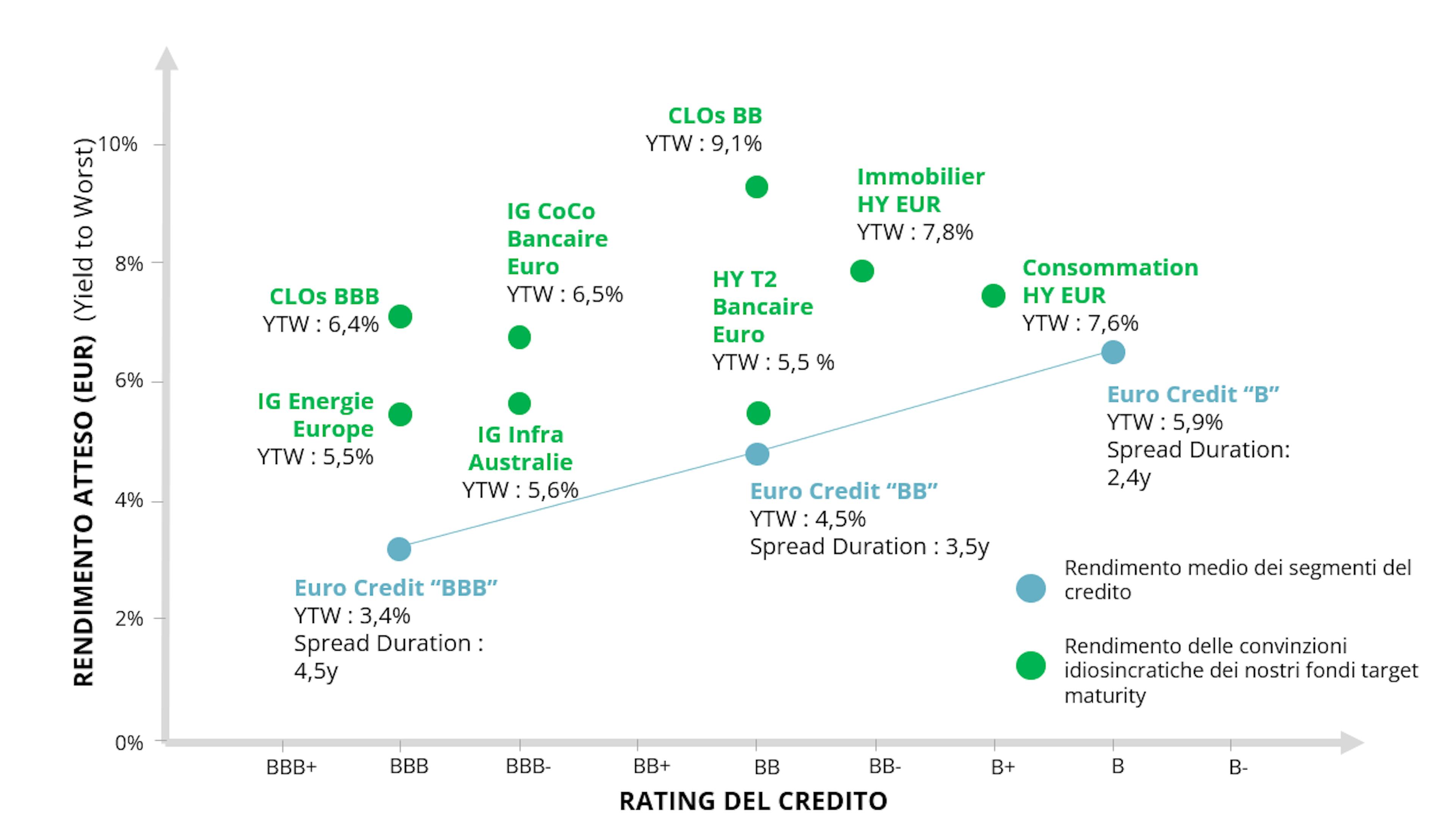 Sulla scia di questo successo, i nostri 3 fondi target maturity hanno raggiunto 2,9 miliardi di euro di asset in gestione2. Oggi più che mai riteniamo che la gestione attiva sia fondamentale per trarre il massimo vantaggio dai mercati del credito e costruire portafogli interessanti in termini di profilo rischio/rendimento.