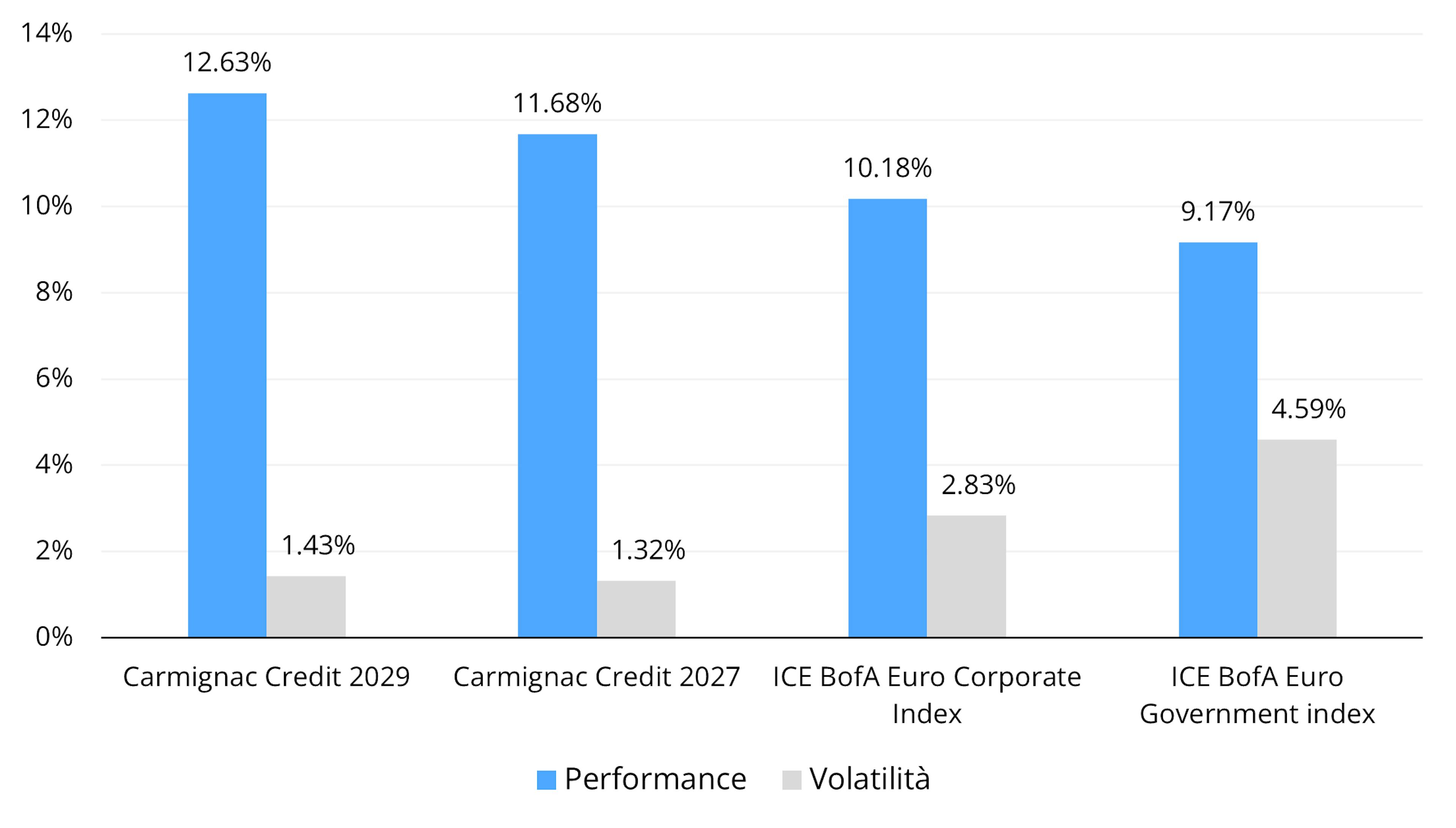 Dal 2020, la nostra gamma di fondi obbligazionari target maturity ha ottenuto performance eccellenti, come dimostra il recente successo di Carmignac Credit 2029, che ha realizzato una performance del +12,63% nel suo primo anno di vita, mantenendo un profilo di rischio contenuto con un rischio medio di portafoglio pari a BBB.
