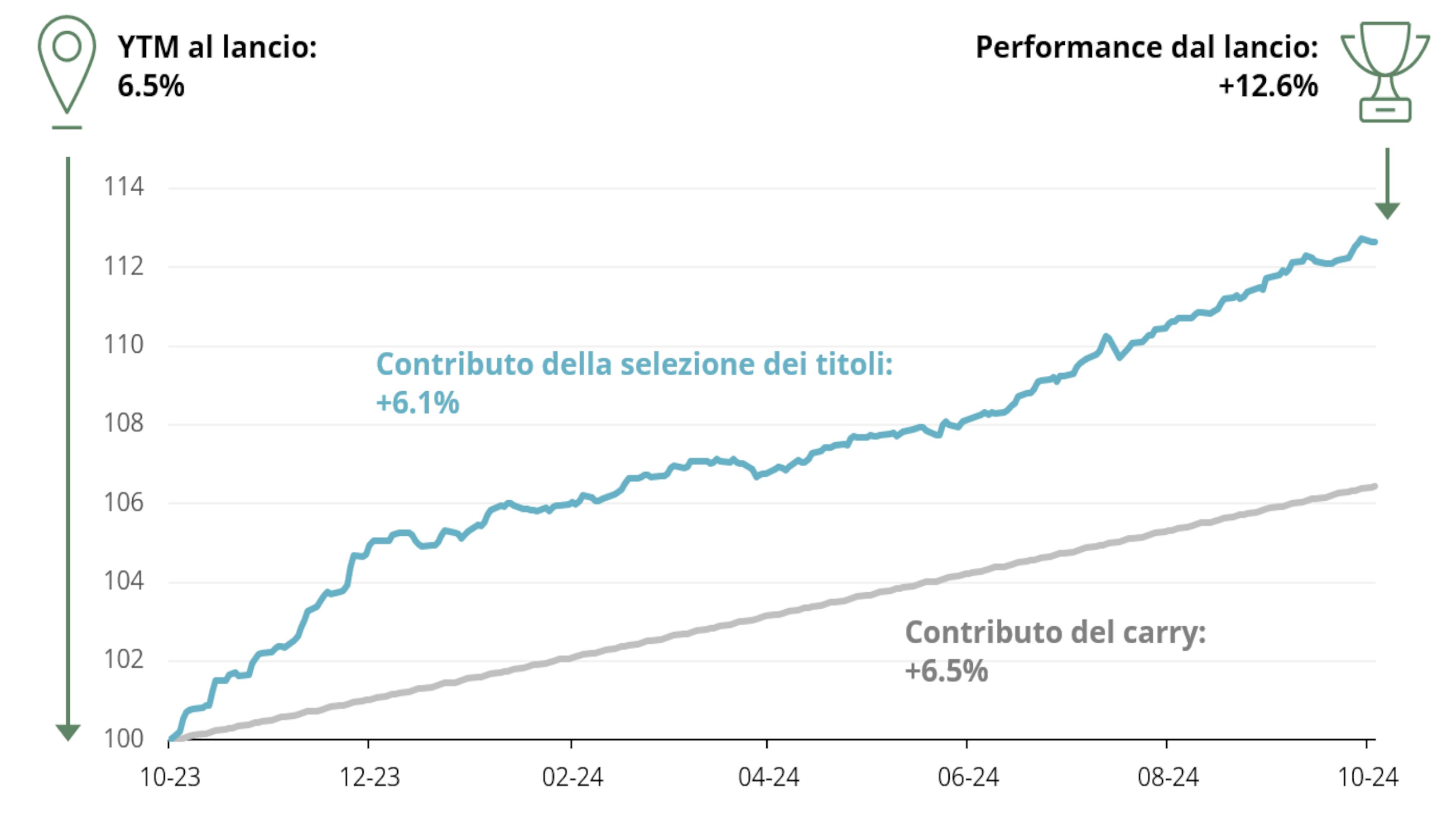 1Obiettivo d'investimento nel prospetto per la classe di azioni A EUR: 1,90% annualizzato tra la data di creazione (30 ottobre 2020) e il 31 ottobre 2025 (la "Data di scadenza").