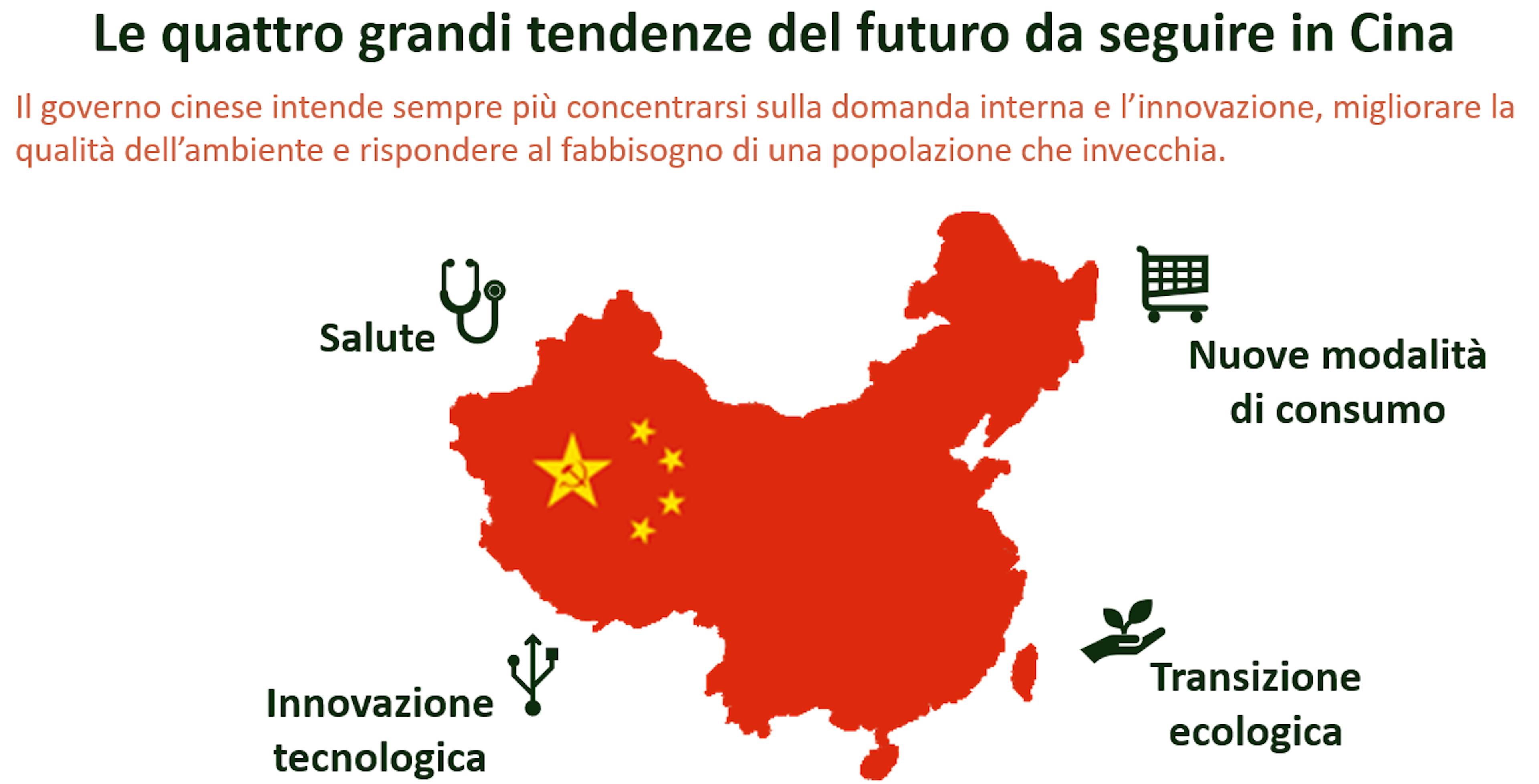 Il governo cinese ha annunciato un piano di sviluppo 2021-2035 che mira a rispondere alle numerose sfide demografiche ed economiche ma anche a creare nuovi volani di crescita. Le riforme che ne derivano fanno emergere quattro grandi tendenze di lungo termine che offrono molteplici opportunità di investimento: l’innovazione tecnologica, la transizione ecologica, l’evoluzione delle modalità di consumo, la salute e le innovazioni in campo medicale.