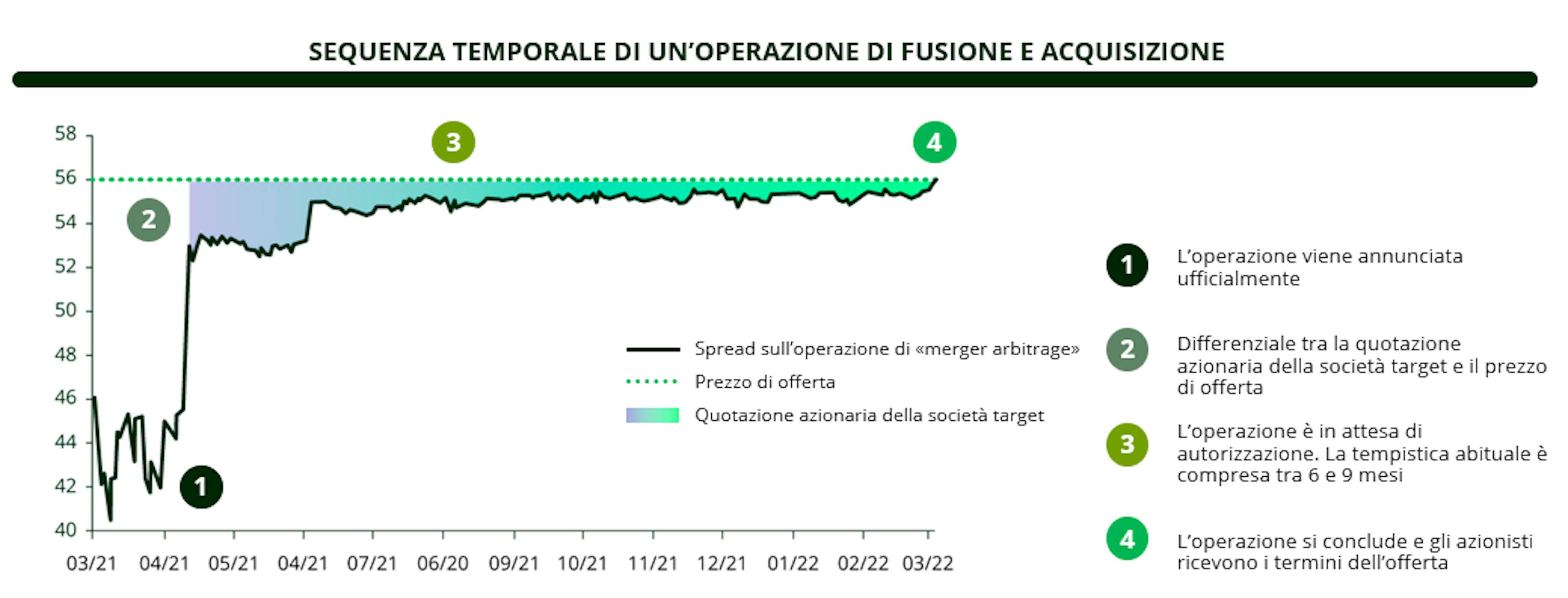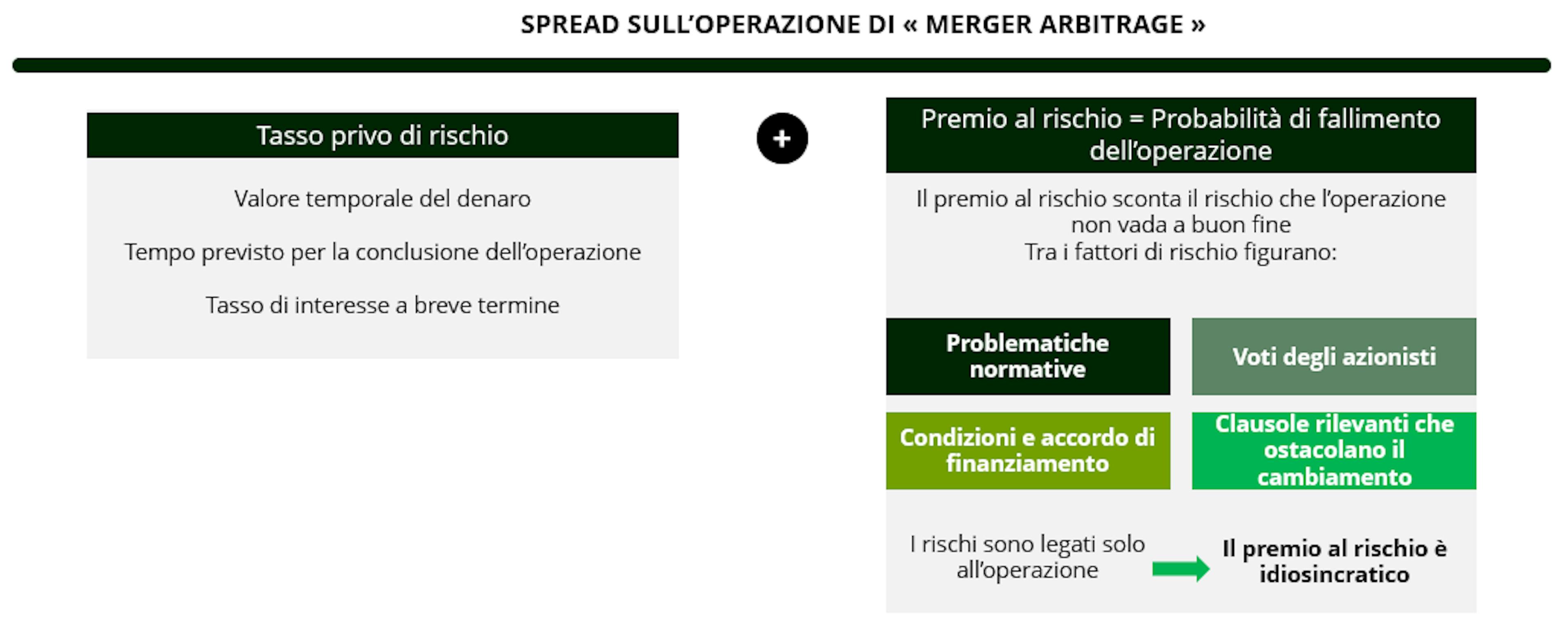 Lo spread sulle operazioni di merger arbitrage, ovvero il rendimento atteso da un investitore, è la somma di due fattori: