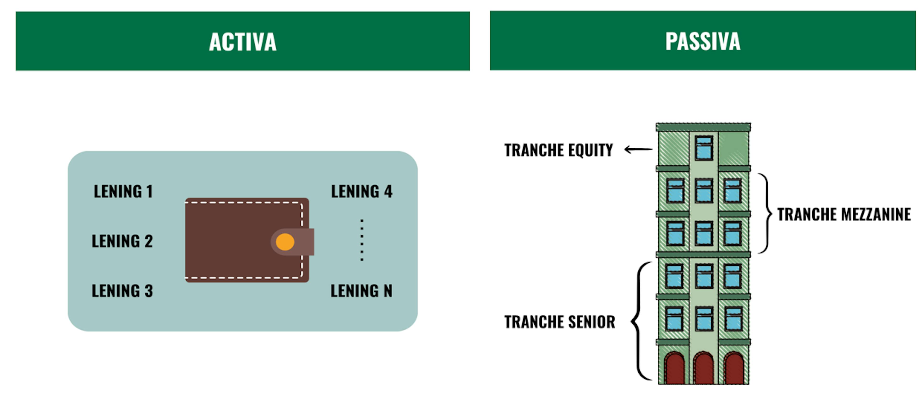 De passiva bestaan uit verschillende schuldtranches:
