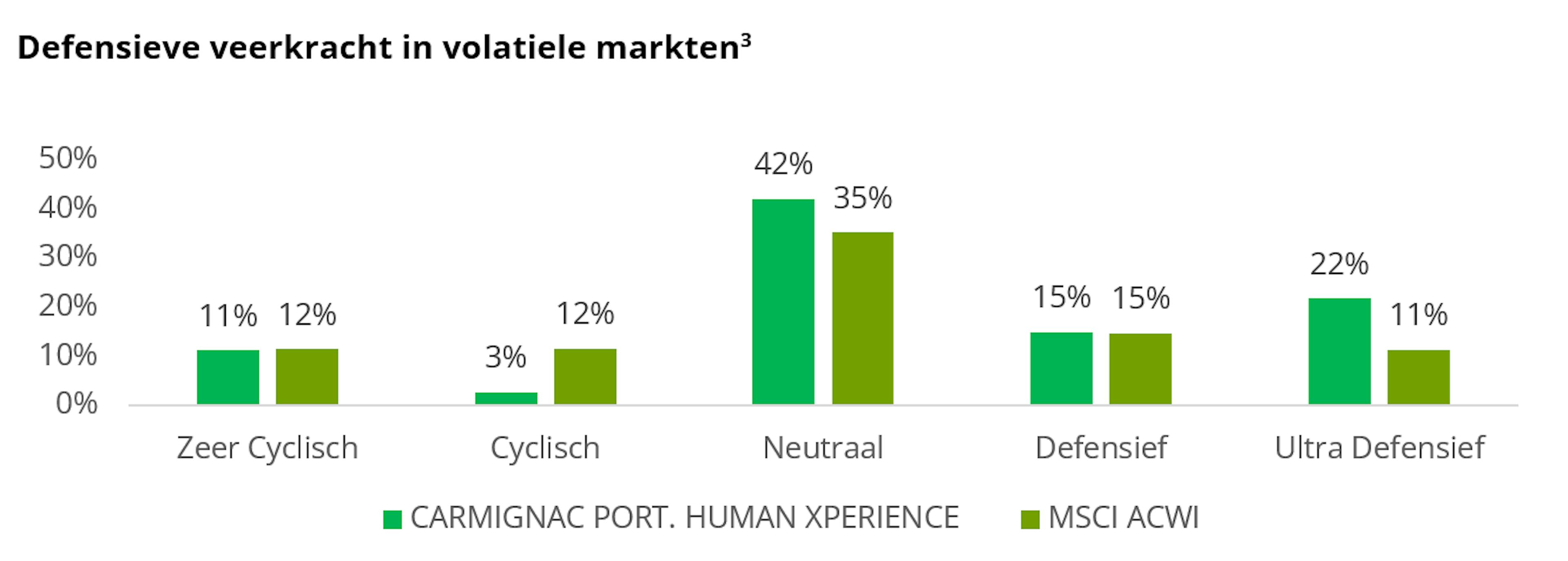 Het defensieve profiel met lage bèta van het fonds biedt bescherming als de volatiliteit terugkeert. Door zich te richten op bedrijven met betrokken werknemers en loyale klanten, neigt het fonds naar bedrijven met een 'klevende' vraag en minder verloop - structurele voordelen die stabiliteit in economische cycli ondersteunen.