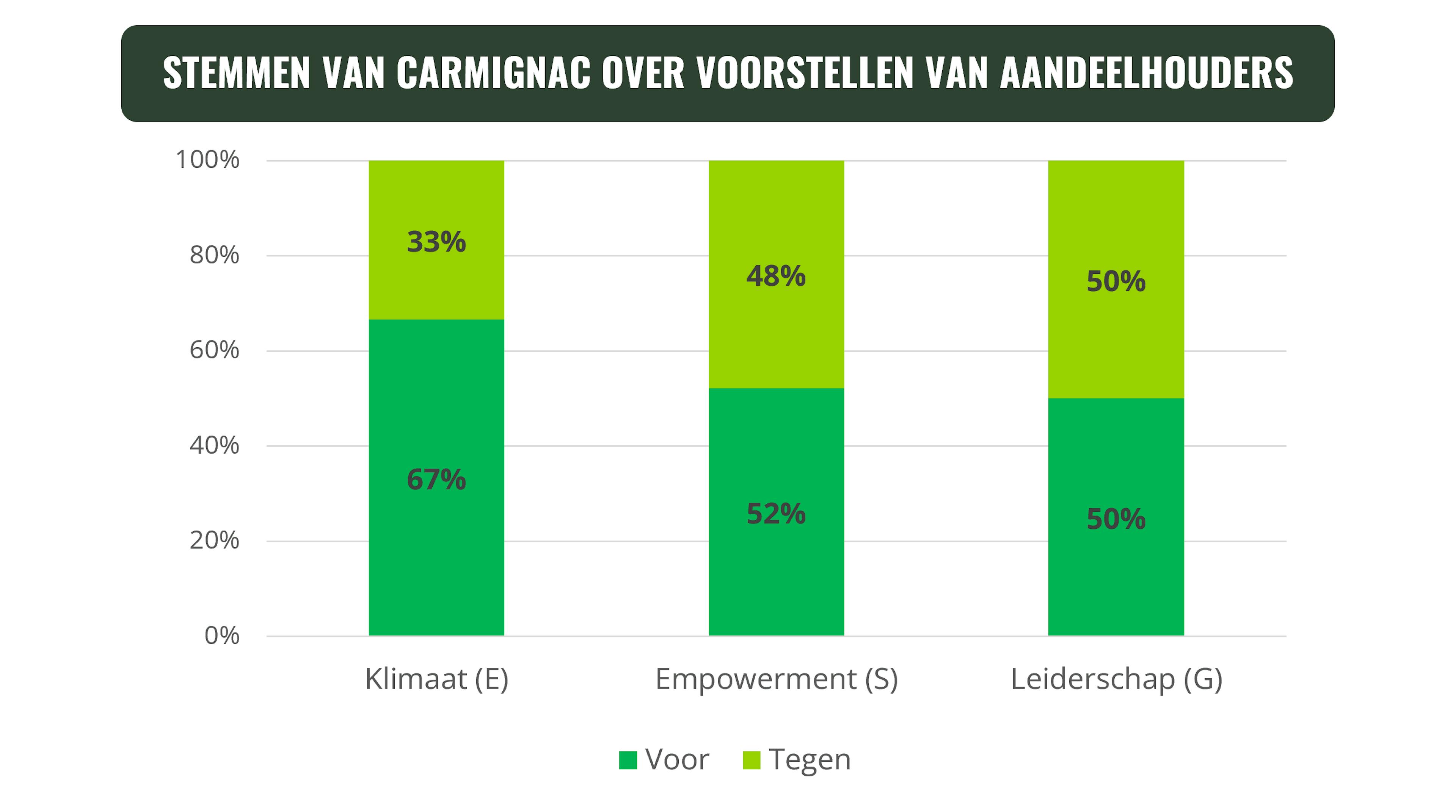 Wij zijn er nog steeds van overtuigd dat voorstellen op initiatief van aandeelhouders een cruciaal middel zijn om als minderheidsaandeelhouder de raad van bestuur ter verantwoording te roepen. Carmignac bekijkt echter geval per geval hoe het op dat soort besluiten stemt. Gezien de recordtoename van het aantal voorstellen op initiatief van aandeelhouders, lijkt ons de beste aanpak om alleen besluiten te steunen die relevante kwesties behandelen, niet overdreven dwingend of belastend zijn en echt constructief zijn met betrekking tot ESG-thema's.