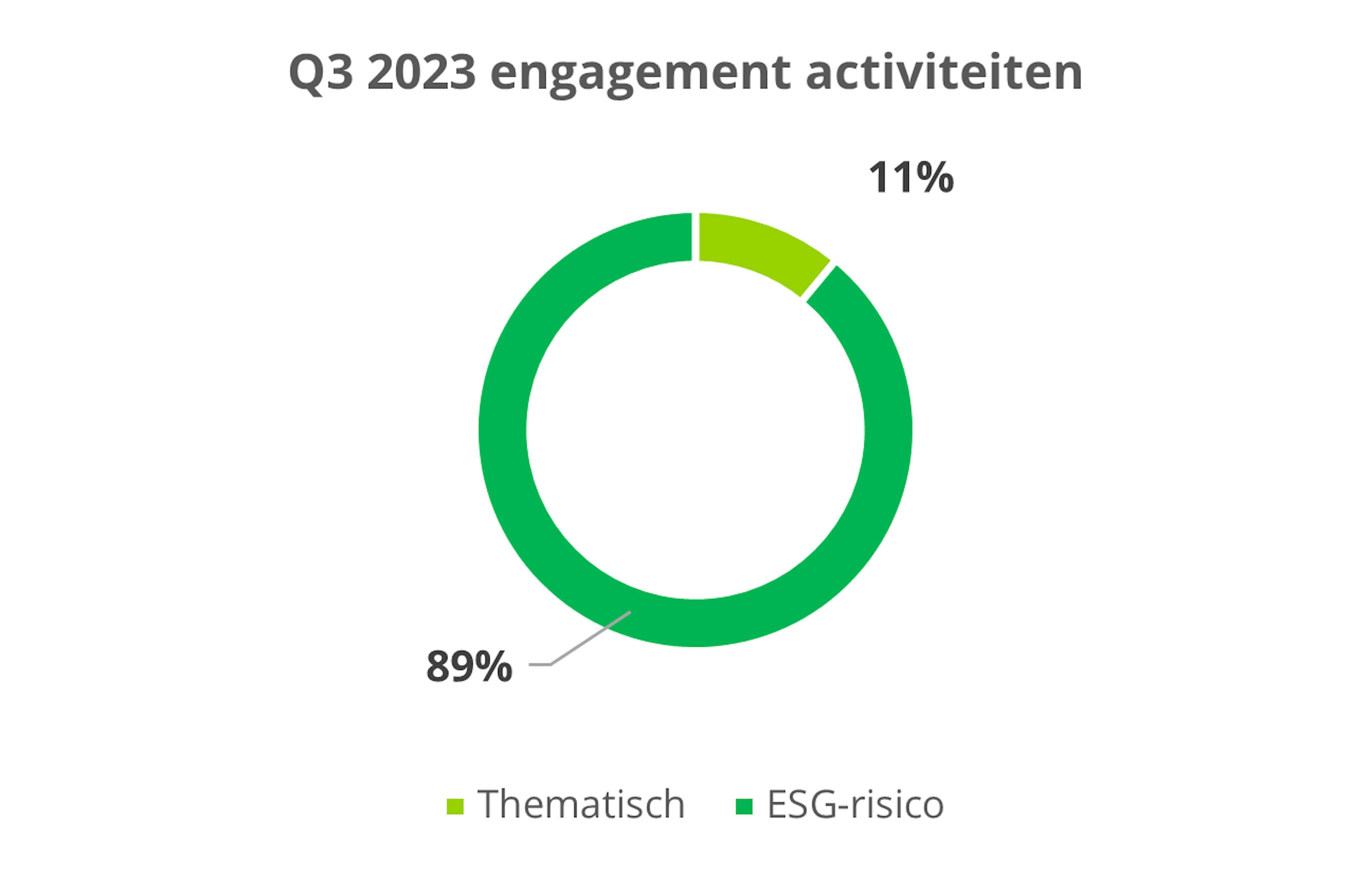 Als langetermijnbeleggers gaan wij met de bedrijven waarin wij beleggen regelmatig in gesprek om hen aan te moedigen hun praktijken op het vlak van milieu, maatschappij en ondernemingsbestuur (Environmental, Social, Governance – ESG) te verbeteren. In het derde kwartaal van 2023 kwam ons actief aandeelhouderschap tot uiting in: