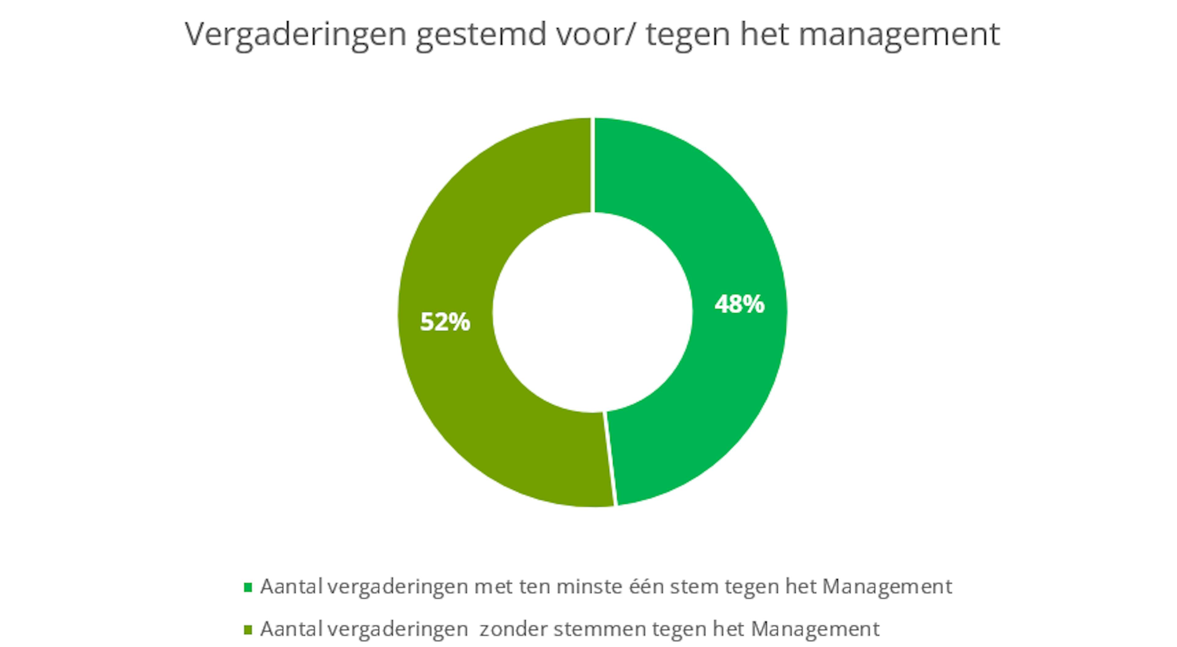 * Deze gegevens hebben betrekking op het aantal vergaderingen waar Carmignac een stem heeft uitgebracht tegen de aanbeveling van het bestuur. In de praktijk gaat het om stemmen die zijn uitgebracht tegen resoluties van het management en, in de meeste gevallen, om stemmen die zijn uitgebracht voor resoluties van de aandeelhouders (tenzij de resolutie van de aandeelhouders wordt gesteund door het management).