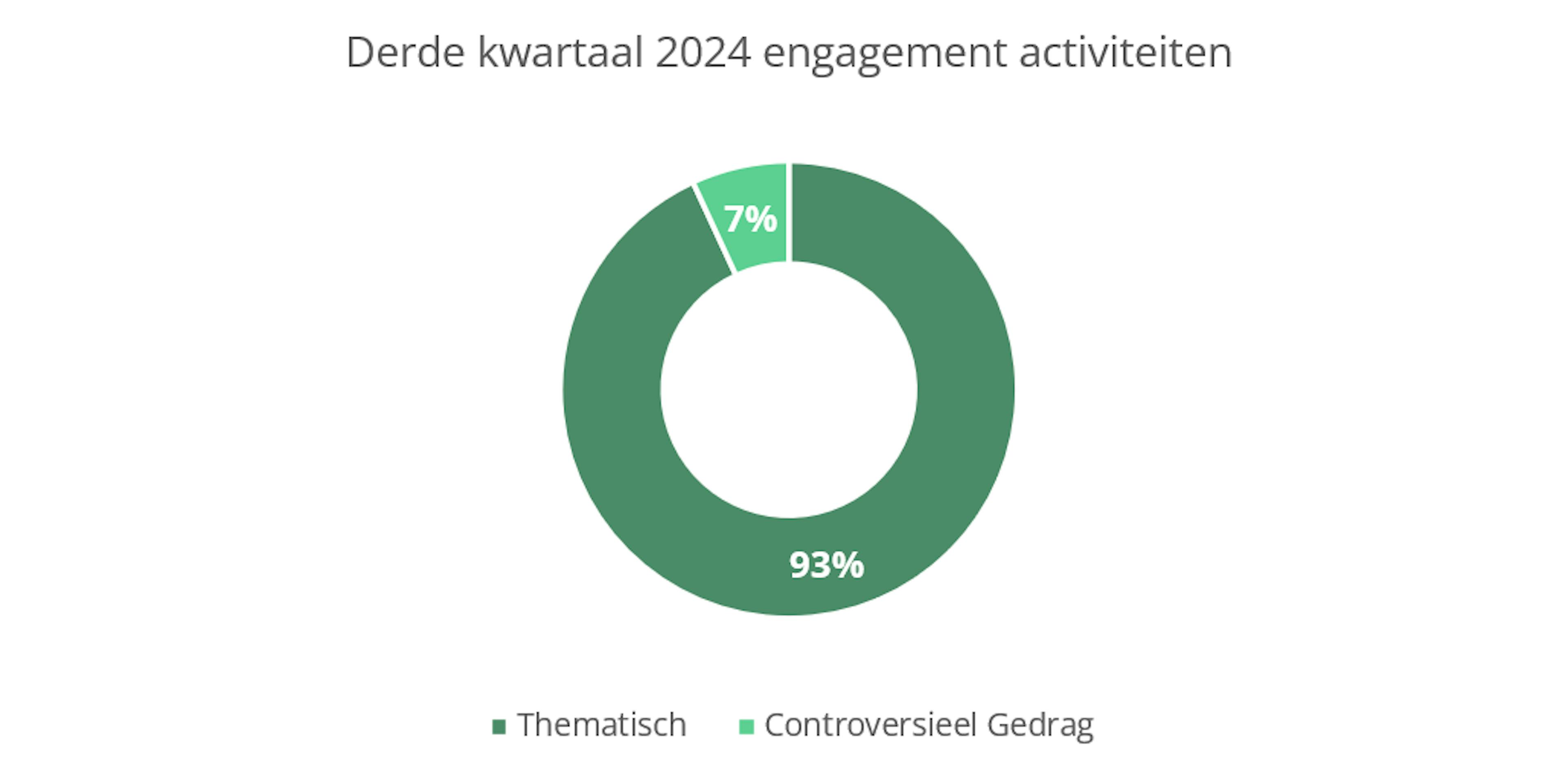Als langetermijnbeleggers gaan wij met de bedrijven waarin wij beleggen regelmatig in gesprek om hen aan te moedigen hun praktijken op het vlak van milieu, maatschappij en ondernemingsbestuur (Environmental, Social, Governance – ESG) te verbeteren. In Derde kwartaal 2024 kwam ons actief aandeelhouderschap tot uiting in: