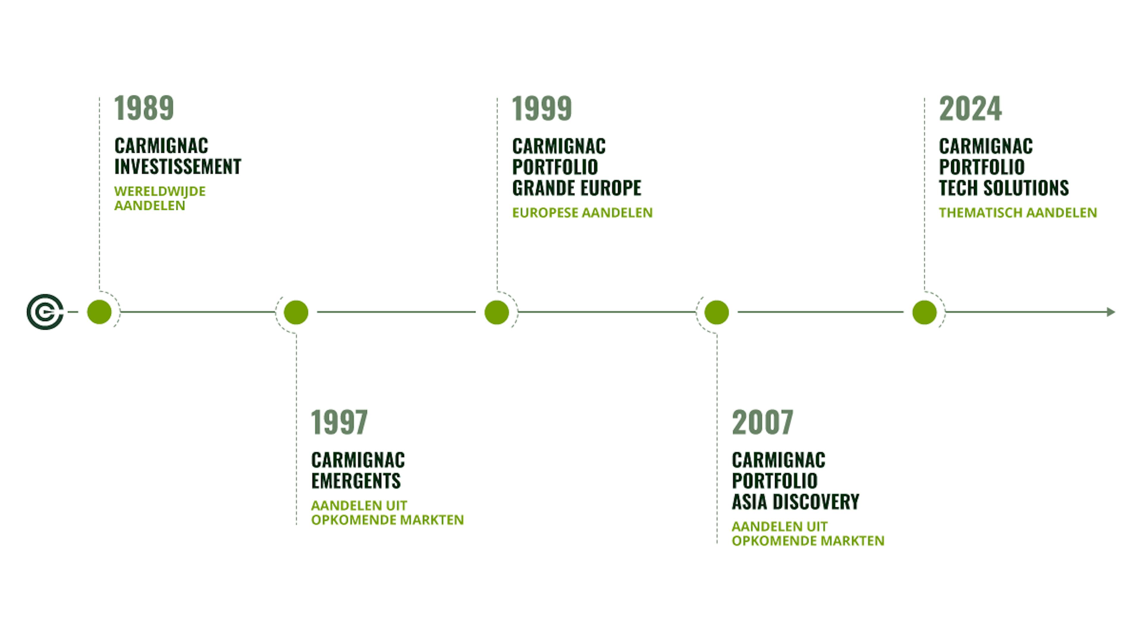 Bij de beslissing om in het gepromote fonds te beleggen moet rekening worden gehouden met alle kenmerken of doelstellingen ervan zoals beschreven in het prospectus. Voor bepaalde personen of landen kan de toegang tot de fondsen aan beperkingen onderhevig zijn. Dit document richt zich niet tot personen die vallen onder een rechtsgebied waar (vanwege de nationaliteit of woonplaats van de desbetreffende persoon of om andere redenen) de informatie in dit document of de beschikbaarheid daarvan verboden is. Personen voor wie een dergelijk verbod geldt, hebben geen toegang tot deze informatie. Welke belastingen er worden geheven, hangt van de situatie van het individu af. De fondsen zijn niet geregistreerd voor de retailmarkt in Azië, Japan en Noord-Amerika, en zijn niet geregistreerd in Zuid-Amerika. Carmignac Fondsen zijn in Singapore als buitenlandse belegging met beperkende voorwaarden geregistreerd (uitsluitend voor professionele cliënten). De fondsen zijn niet geregistreerd in het kader van de Amerikaanse Securities Act van 1933. In overeenstemming met de Amerikaanse Regulation S en de FATCA mag het fonds niet ten gunste van of uit naam van een "U.S. person" direct of indirect aangeboden of verkocht worden. Het prospectus, de KID, de NIW en de jaarlijkse periodieke verslagen van het fonds zijn beschikbaar op www.carmignac.com/nl-nl, of op aanvraag bij de Beheermaatschappij. De risico's, vergoedingen en lopende kosten zijn beschreven in de EBI (Essentiële Beleggersinformatie). De KID dient voorafgaand aan iedere inschrijving aan de inschrijver beschikbaar te worden gesteld. De inschrijver dient de KID te lezen. Beleggers kunnen hun kapitaal gedeeltelijk of geheel verliezen aangezien het fondskapitaal niet wordt gegarandeerd. Aan de fondsen is een risico van kapitaalverlies verbonden. De beheermaatschappij kan op elk moment besluiten de marketing in uw land stop te zetten. Beleggers kunnen toegang krijgen tot een samenvatting van hun rechten in het Nederlands via de volgende link in sectie 5 getiteld "Samenvatting van de beleggersrechten"