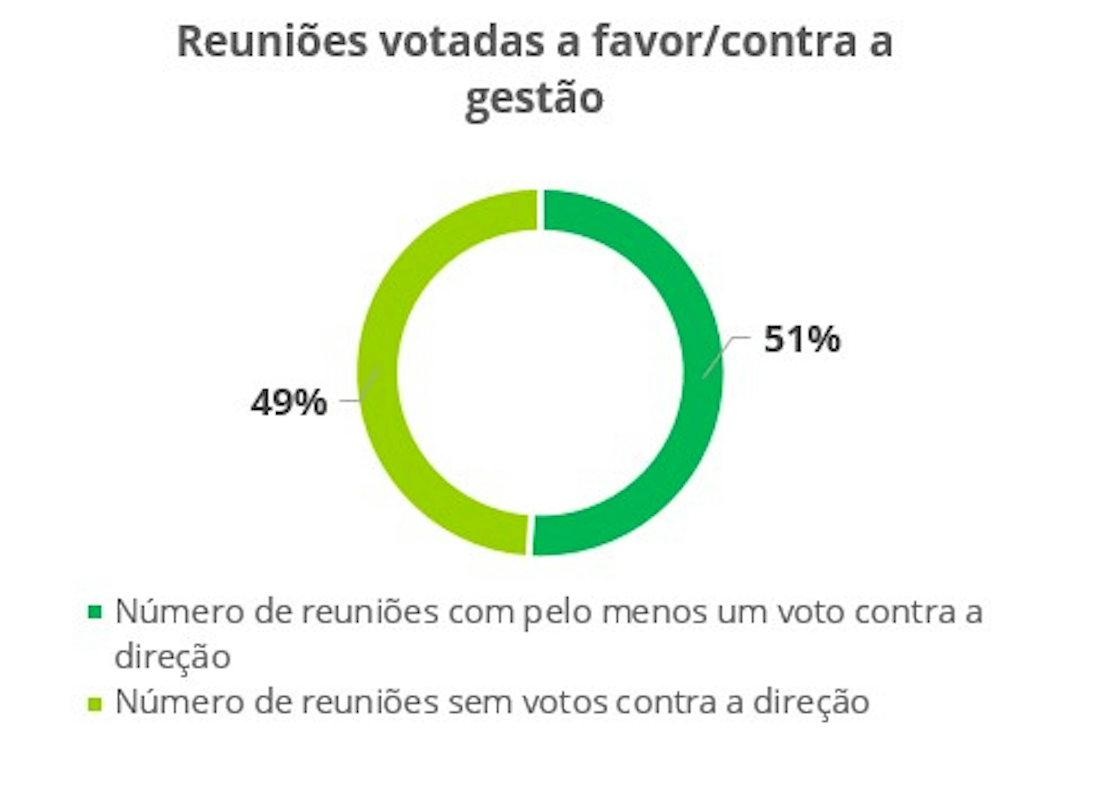 *Estes dados referem-se ao número de reuniões em que a Carmignac tomou uma posição de voto contra a recomendação do conselho de administração. Na prática, trata-se de votos contra as deliberações da direção e, na maior parte dos casos, de votos a favor das deliberações dos acionista (exceto se a deliberação dos acionistas for apoiada pela direção).