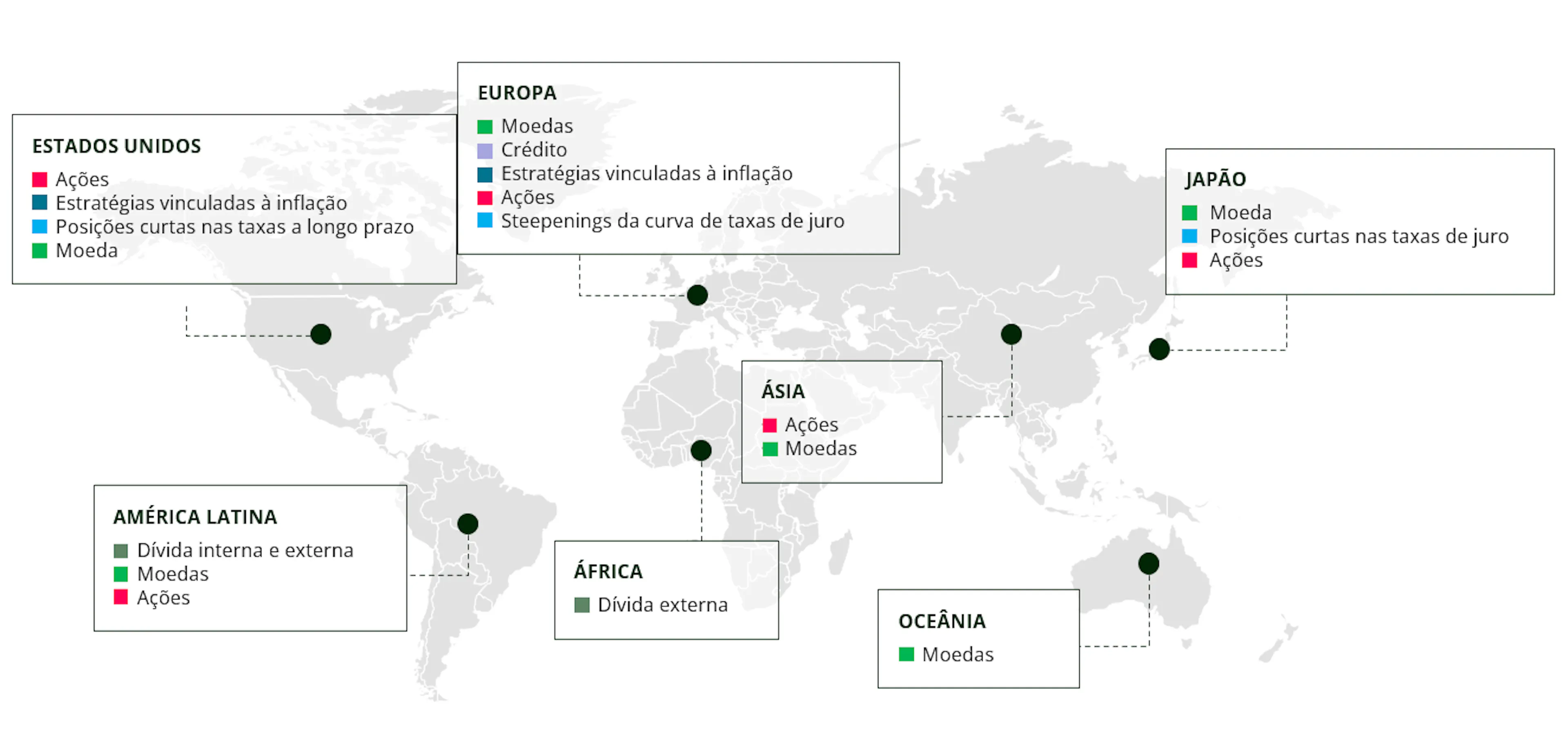 Tomemos as matérias-primas como exemplo. O nosso cenário de inflação estruturalmente mais elevada justifica uma alocação positiva a este tema. No entanto, esta exposição não é sistematicamente concretizada através de ações. Em vez disso, optámos por expressar essa convicção através das moedas de países que consideramos intimamente ligados aos ciclos das matérias-primas, como o real brasileiro e o dólar australiano. É precisamente isso que significa diversificação geográfica: tirar partido de toda a gama de instrumentos de mercado para selecionar os veículos mais adequados para concretizar uma estratégia de investimento.
