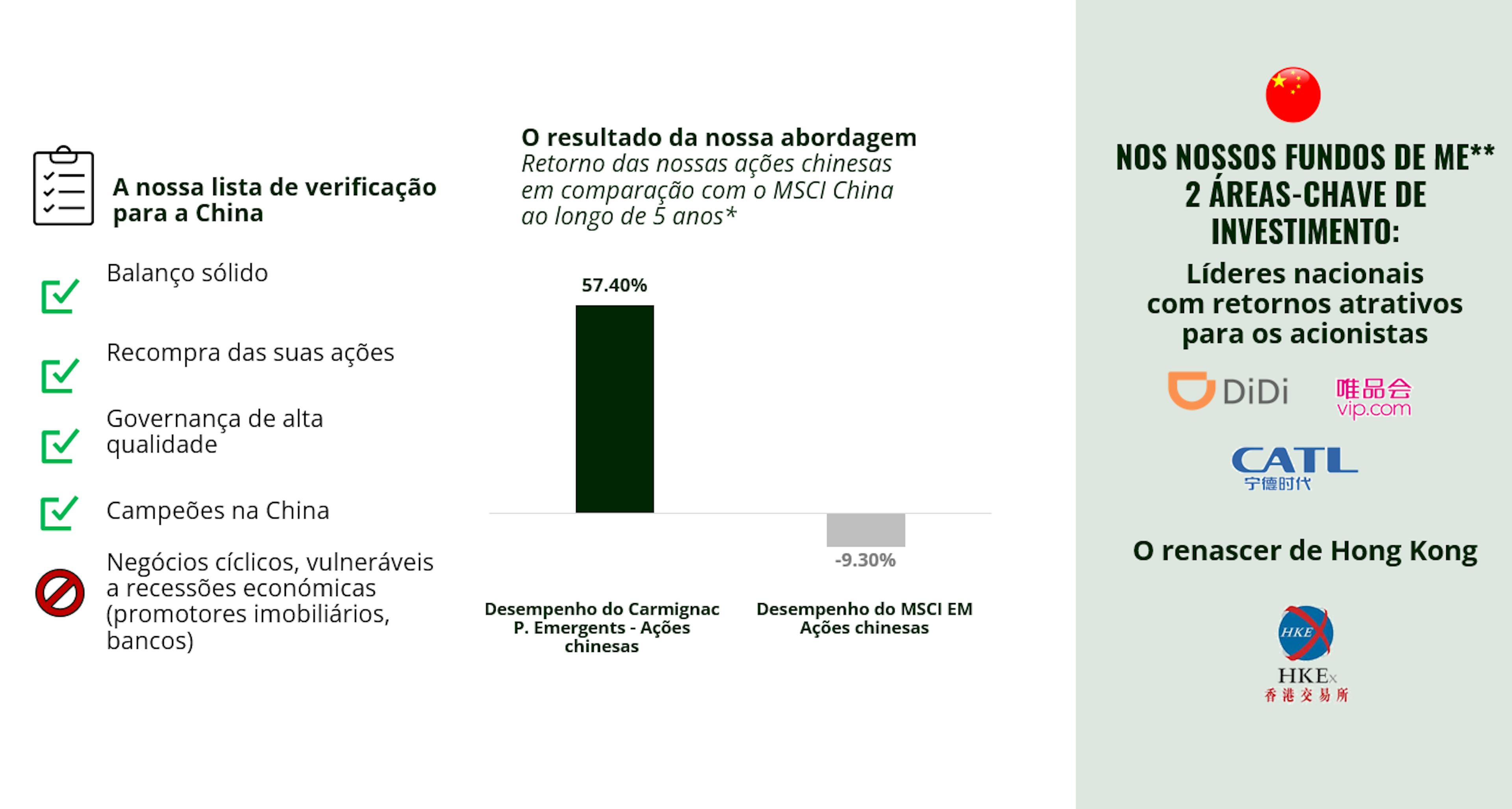 O desempenho passado não é necessariamente um indicador do desempenho futuro. Os desempenhos são líquidos de comissões (excluindo eventuais comissões de subscrição cobradas pelo distribuidor). No caso de ações sem cobertura cambial, o retorno poderá aumentar ou diminuir em resultado de flutuações cambiais. A referência a determinados títulos e instrumentos financeiros serve para fins ilustrativos para destacar ações incluídas, ou que já o tenham sido, em carteiras de fundos da gama Carmignac. Não se destina a promover o investimento direto nesses instrumentos, nem constitui consultoria de investimento. A Sociedade Gestora não está sujeita à proibição de negociação destes instrumentos antes de emitir qualquer comunicação. As carteiras dos fundos Carmignac estão sujeitas a alterações sem aviso prévio. A referência a uma classificação ou prémio não garante os futuros resultados do OIC ou do gestor.